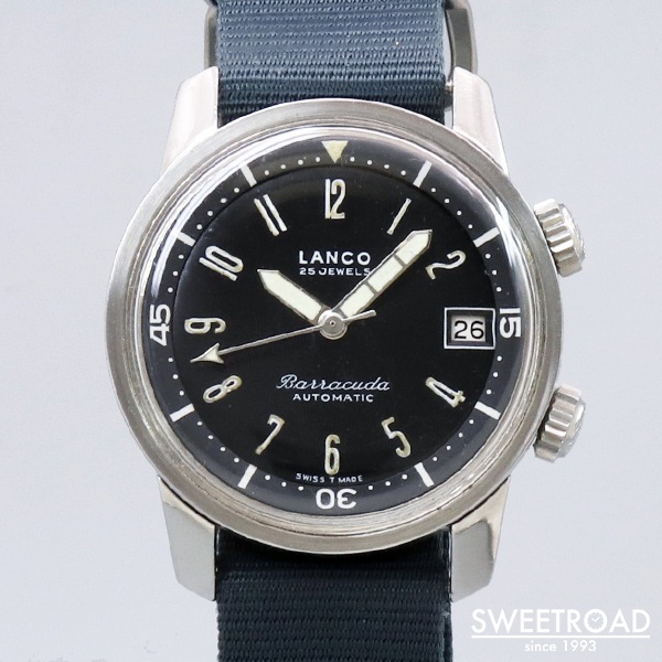 LANCO ランコ Barracuda バラクーダ オリジナルブラックダイヤル アラビアインデックス Wリューズ スーパーコンプレッサーケース Cal.1146 自動巻 1960年代 w-24042