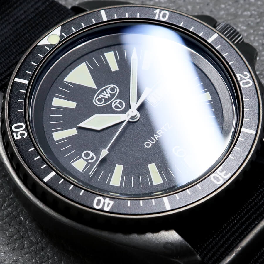 1990年代製造のイギリス海軍海兵隊「SBS/特殊舟艇部隊」に支給された、CWC(Cabot Watch Company)のダイバーズウォッチが入荷しました。 1987年から「SBS/特殊舟艇部隊」に支給され、最初のモデルはベークライトベゼル仕様ですが、本商品はその後に支給されたモデルになります。 裏蓋にはブロードアローとNATOイギリス海軍を示す管理コードの刻印があります。 マットブラックダイヤルにトリチウムの蛍光塗料を示す「T」マークが配されたミリタリーらしい顔立ち。 夜光に僅かな経年が見られますが、文字盤自体は傷みのない綺麗な状態です。 外装には小傷や塗料の剥がれが見られますが、無骨なフォルムは健在で、裏蓋の刻印もくっきりと残っています。 逆回転防止ベゼルやねじ込み式リューズ採用されており、ダイバーズウォッチならではの仕様も魅力的です。 ベゼルやリューズの操作に問題はありません。 バネ棒式ではなくパリス管式を採用しているため、ナイロンストラップや巻き込み式の革ベルトが装着可能です。 当店にてOH(分解掃除)を行っております。