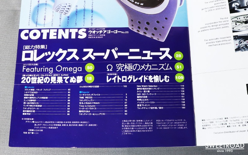 - 巻頭特集「ロレックス・スーパーニュース」と題して、ロレックスの歴史やデイトナなどについて熱く語られています。