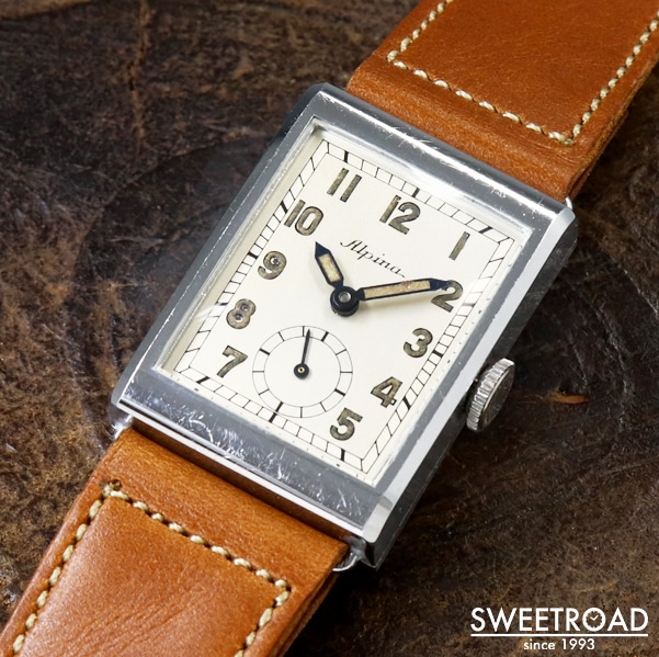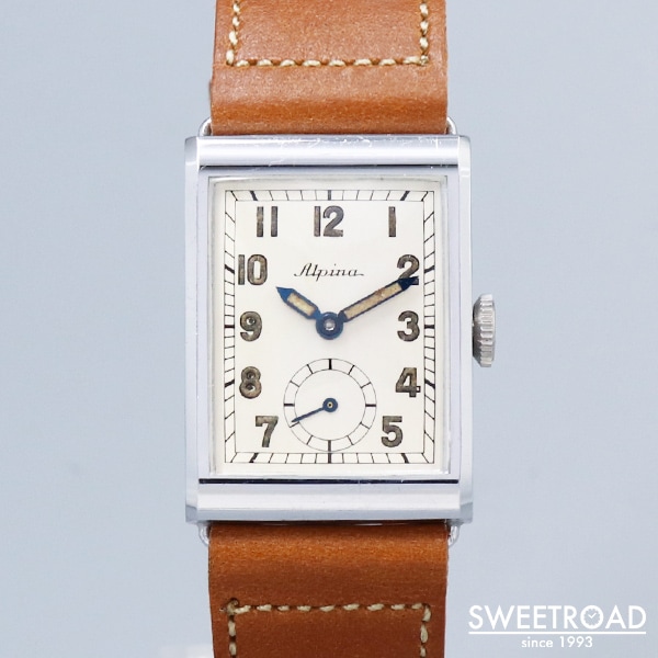 Alpina アルピナ オリジナルダイヤル アラビアインデックス レクタンギュラーケース 二重裏蓋 手巻き 1940年代 w-23111GNZ