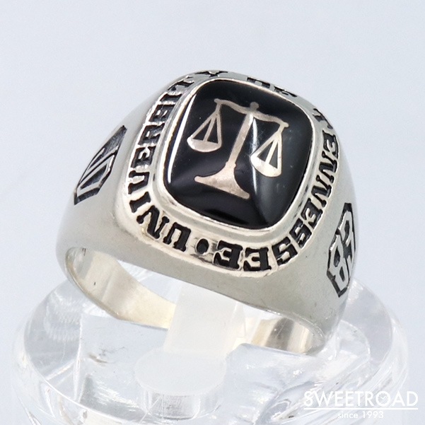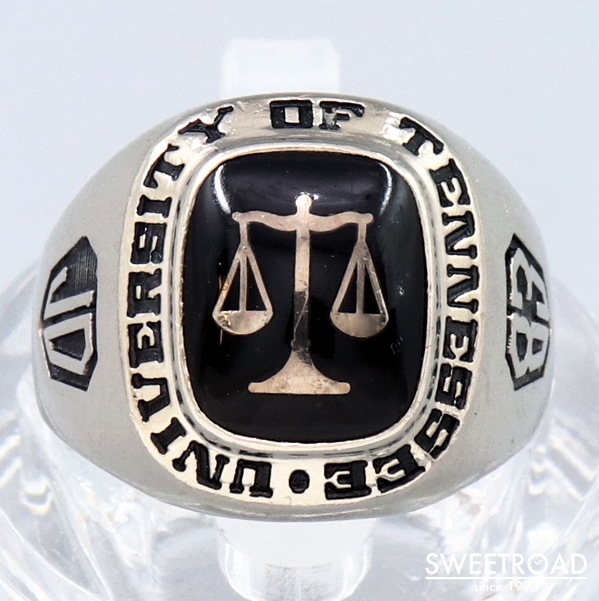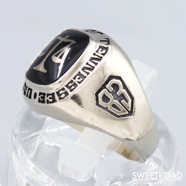 College Ring カレッジリング 10KWG 10金ホワイトゴールド無垢 18号 UNIVERSITY OF TENNESSEE テネシー大学 法学部 ブラックオニキス 1983年製 w-23147GNZ