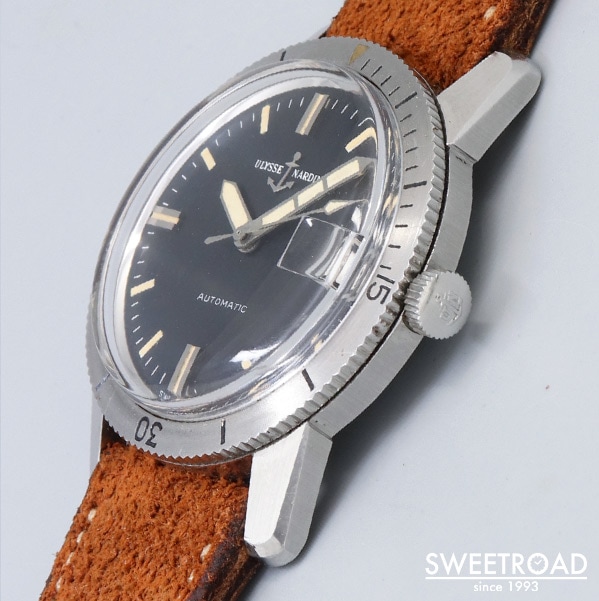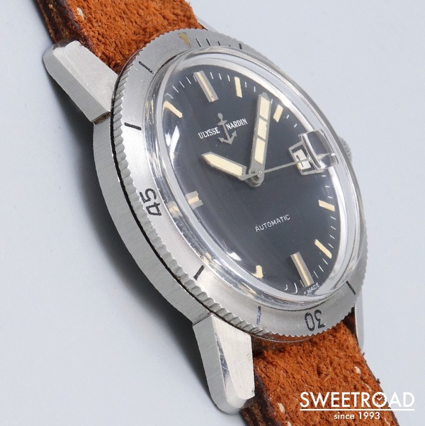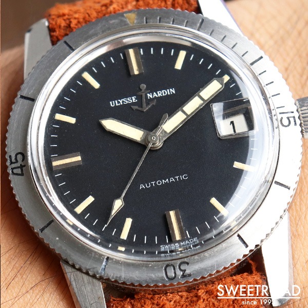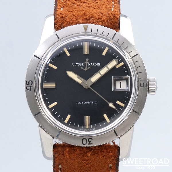 船舶用クロノメーターの分野でほぼ独占状態になるほど成功し、50カ国の海軍に納入された歴史を持つ老舗時計メーカー「ユリス・ナルダン」。 本商品は、ステンレス仕様の回転ベゼルや視認性の高い針が装備された「ダイバータイプ」の希少モデルです。 しかも、ケースエッジや仕上げ、ベゼルの墨入れなどが綺麗に残っており、「ミントコンディション」と言える貴重な個体です。