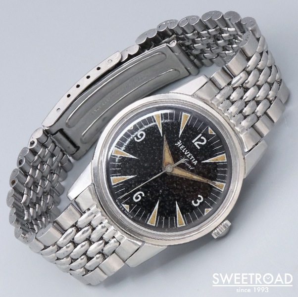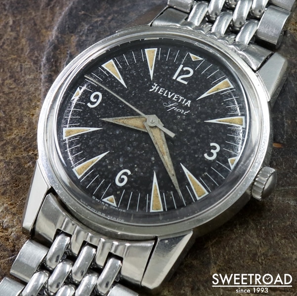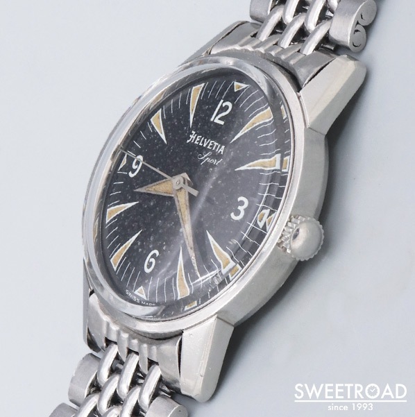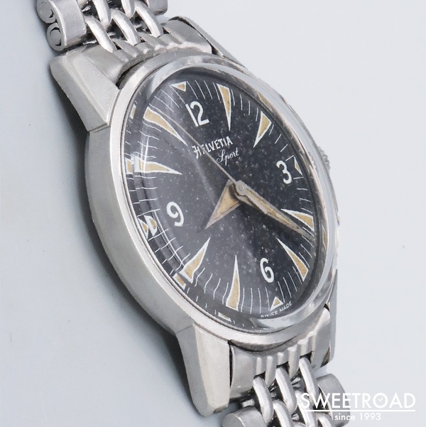 HELVETIA ヘルベティア SPORT スポーツ オリジナルブラックダイヤル 飛びアラビア&クサビインデックス Cal.831 手巻き 1950年代 w-23736GNZ