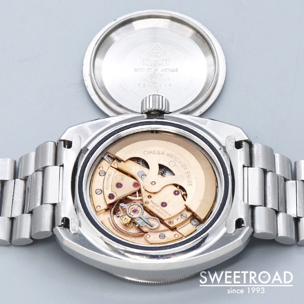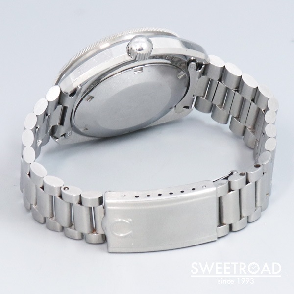 ムーブメントは高級機に多く取り入れられているスワンネック緩急針を採用したCal.565を搭載。 リューズ2段引きで日付のクイックチェンジが行える実用的なモデルです。 ベルトは貴重なオメガ純正の3連ステンレスブレスが装着されています。 長さも十分に残っており、ダレの少ない良好な状態を保っています。