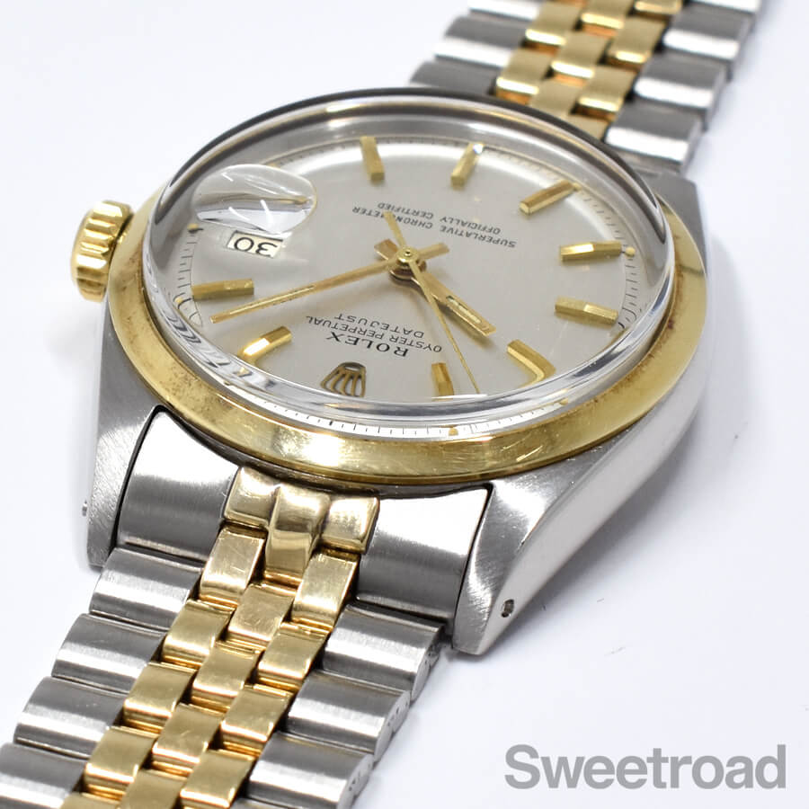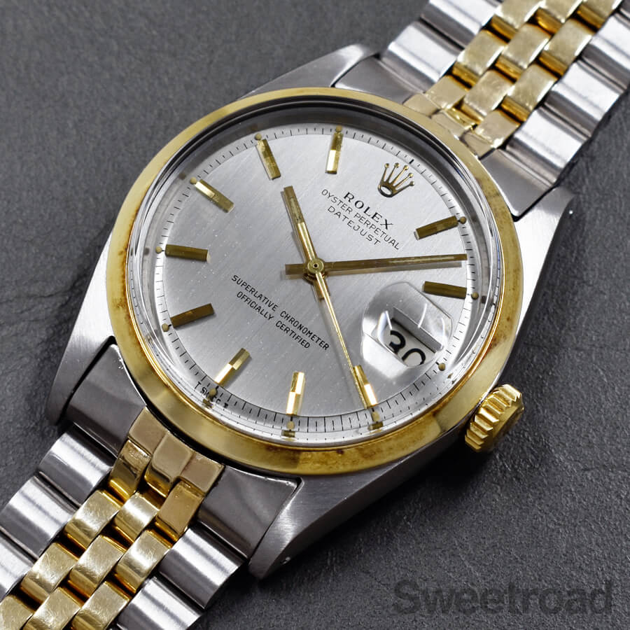 希少性の高いヴィンテージ・デイトジャストが入荷しました。 デイトジャストシリーズの中でも特に製造数が少ないスムースベゼル仕様の型式「Ref.1600」かつ、YGコンビ仕様の一本です。