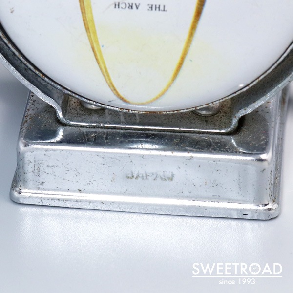 1960年代に日本で製造された輸出用のデスクカレンダーです。 ミズーリ州セントルイスを代表するゲートウェイアーチやブッシュスタジアム、蒸気船SSアドミラルなどがデザインされ、現地のお土産用に製造されたモデルです。 丸い部分を手前に回転させることで日付が1日ずつ送られ、月と曜日は左右のつまみを回すことで変更する、半永久的に使用できる仕組みになっています。 外観には経年による傷みこそございますが、カレンダー部分には目立つようなダメージは見られず実用的な状態を保っています。