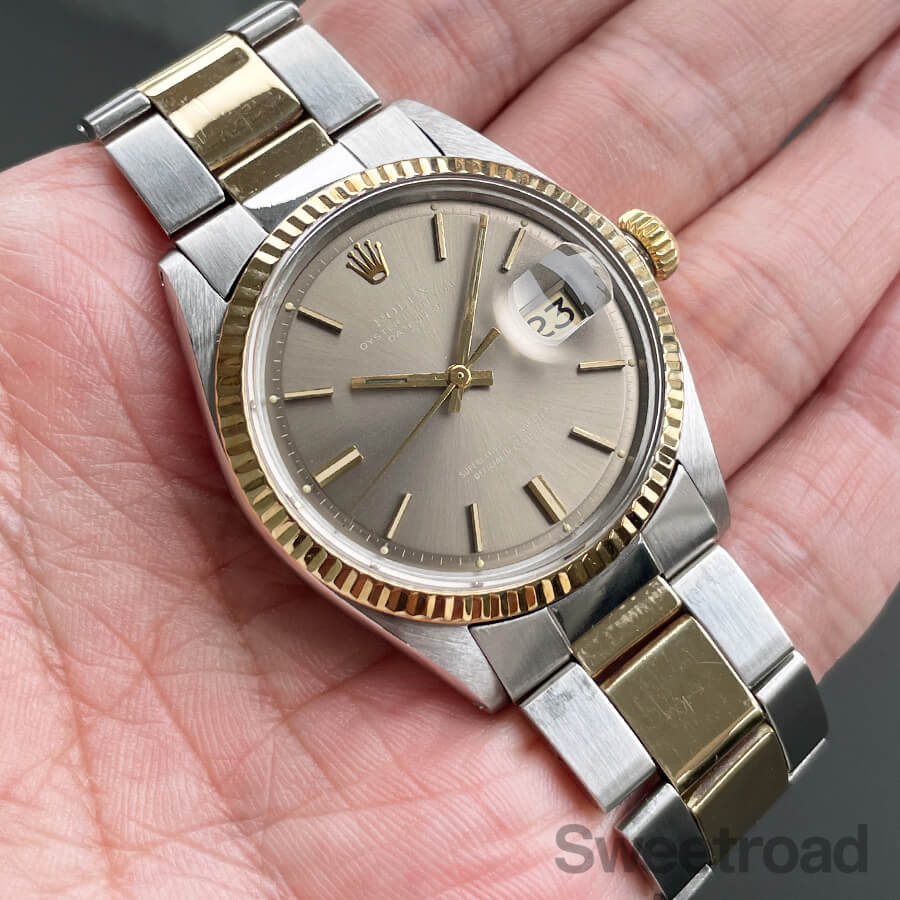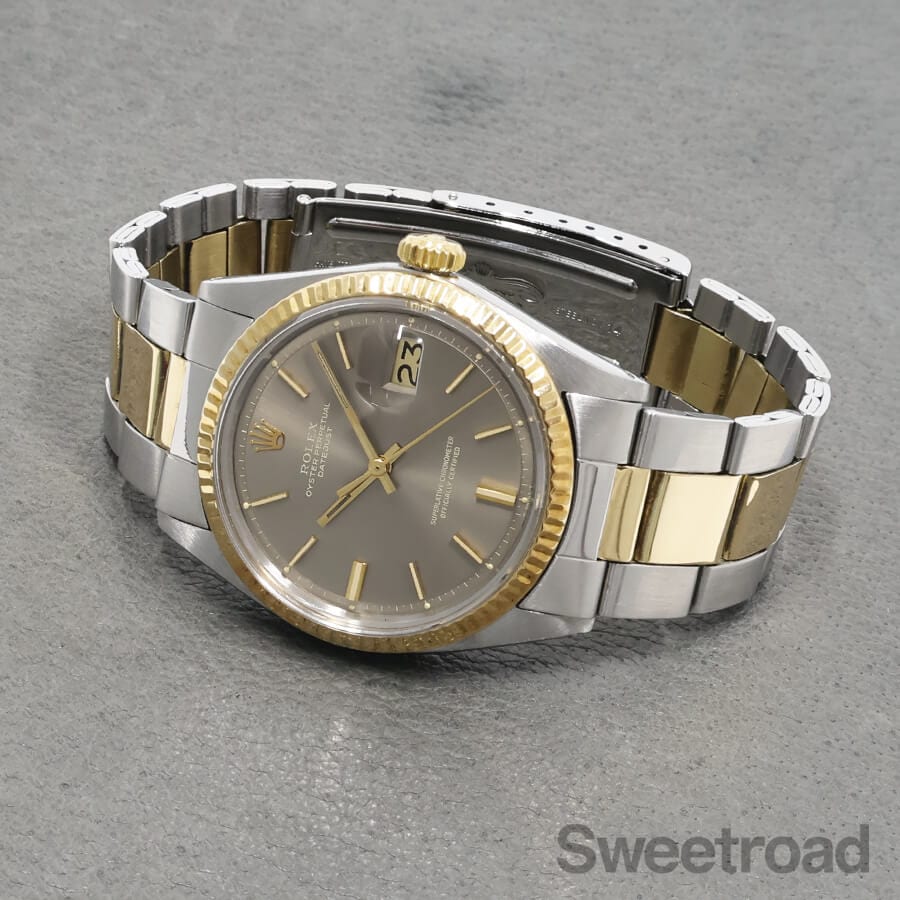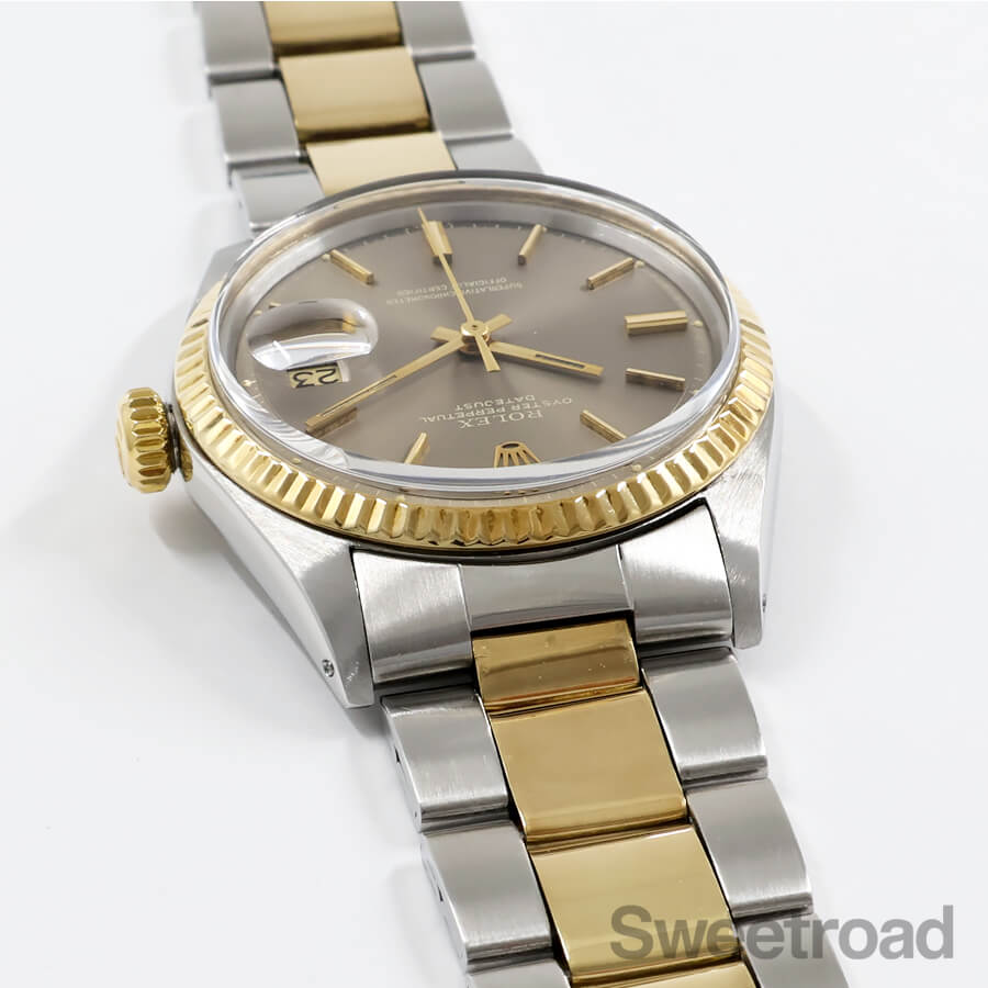 本商品は、1601の中でも非常に希少性の高いグレーダイヤルの個体で、仄かにブラウンがかった色合いが目を惹く逸品です。