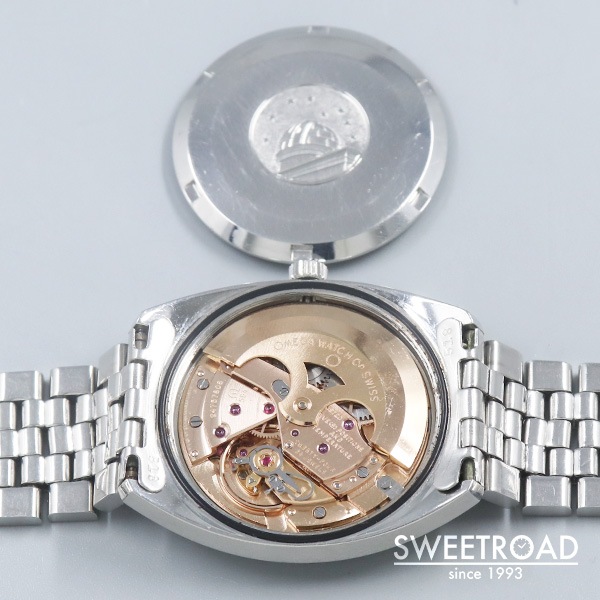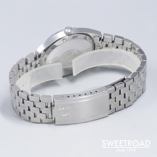 本商品は、経年によるエイジングで若干グレーがかった、希少性の非常に高いオリジナルのマットブラックダイヤルです。 少しザラついた特徴的な質感が魅力的で、針には経年が現れていますが、文字盤自体のコンディションは良好です。 ケースには小傷がございますが、ケースエッジや裏蓋の天文台刻印はしっかりと残っています。 ベルトはオメガ純正のステンレスベルトを装着しており、長さも十分にございます。