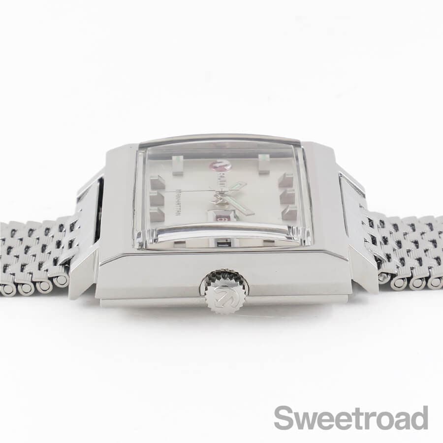 1965年に登場したラドーの人気モデル「MANHATTAN/マンハッタン」。 ニューヨーク・マンハッタンの高層ビルのシルエットをイメージした様なデザインで、1970年の広告では「角形のベストセラー、神秘のスクエア、ラドー・マンハッタン」と謳われていました。