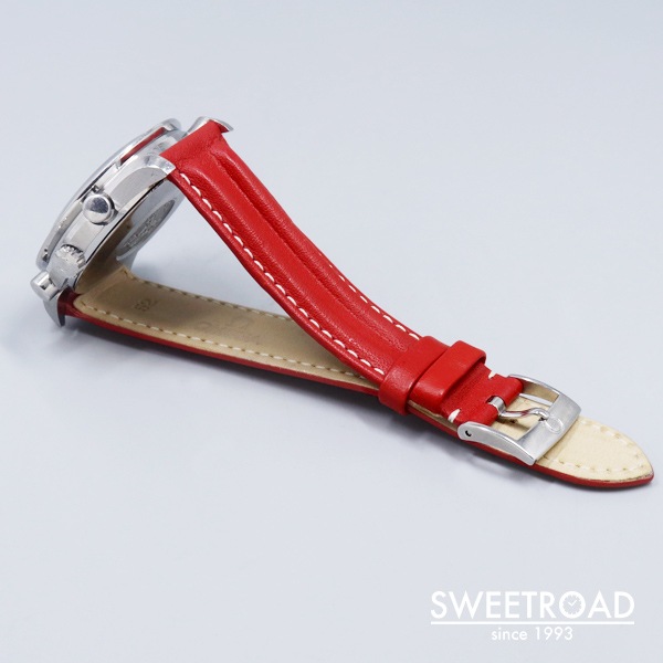 F1レーサーのミハエル・シューマッハとオメガ社が広告契約を結んだ記念に、赤・青・黄の3色展開で製作された特別な「スピードマスター」。 ダイヤル外周のレーシングターンはシューマッハのアイディアによるデザインと言われています。 本商品は、存在感のある華やかなレッドダイヤルが目を惹く個体です。 文字盤は全体的に気になるようなダメージはございません。 ケース径39mmと腕に馴染みやすく、使いやすい程良いサイズ感が魅力的です。 外装には若干の小傷がございますが、劣化しやすいベゼルに剥がれは見られず、ケースエッジも残っています。 ベルトはオメガ純正のレザーベルトを装着しております。