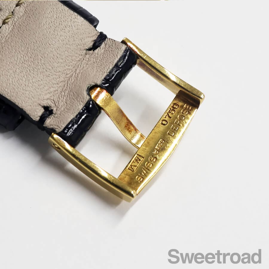 ベルトはフランス・パリの高級革ベルトメーカー、カミーユフォルネのレザーベルトに、ヴァシュロン純正の18KYG尾錠が取り付けられています。