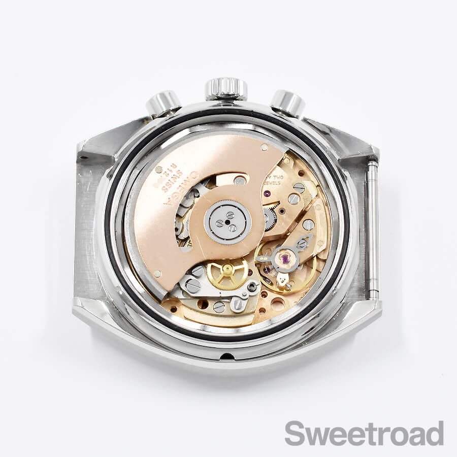オメガ初の自動巻クロノグラフムーブメント「Cal.1040」を搭載しており、インダイヤルの配置やセンターの積算針など、