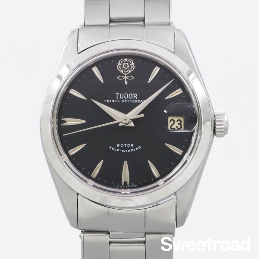 「デカバラ」と呼ばれている12時位置にある大きなバラのマークが特徴的な、チューダーのヴィンテージモデルです。個体数の少ない自動巻ムーブメントを搭載しており、プリンスという表記も洒落ています。ロレックスと同様のオイスターケースに王冠リューズなど、オールドチューダーならではのデザインもポイントです。ダイヤルリダン、外装仕上げが行われているため、全体的に綺麗な状態です。ベルトは貴重なロレックス純正のリベットブレスを装着しています。