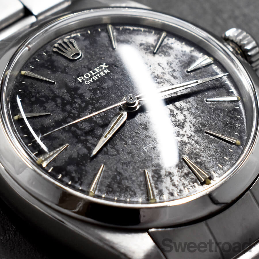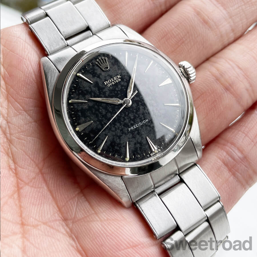 抜群の風合いにエイジングしたブラックミラーダイヤルが目を惹く、ロレックスの手巻きノンデイトモデル「Ref.6426」が入荷しました。