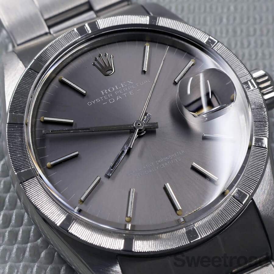 現行品には無いエンジンターンドベゼルが装備された、ロレックス「オイスターパーペチュアルデイト/Ref.1501」が入荷しました。