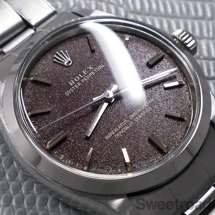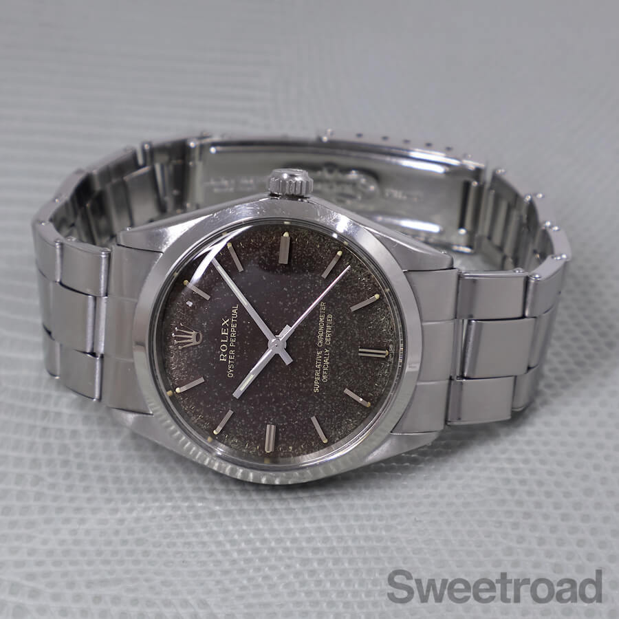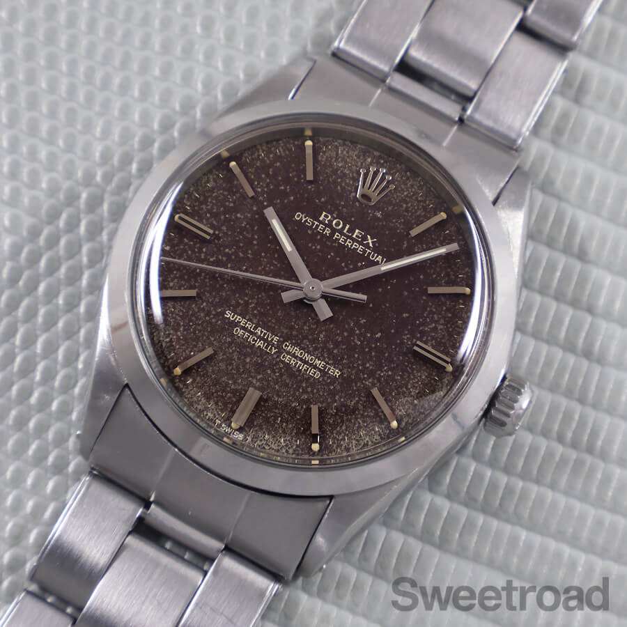 抜群の風合いにブラウンチェンジした、ブラックミラーダイヤルが目を惹く「オイスターパーペチュアル/Ref.1002」が入荷しました。