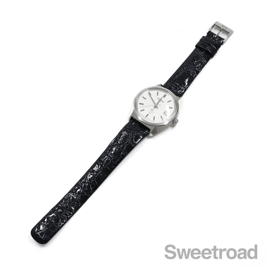 国産初の自動巻10振動機械を搭載したモデル「グランドセイコー/61GS」。 当時のセイコーの最高峰として発売され、現在でも高い人気を誇るモデルです。 本商品は、文字盤6時下に「HI-BEAT 36000」と配された後期型の個体です。