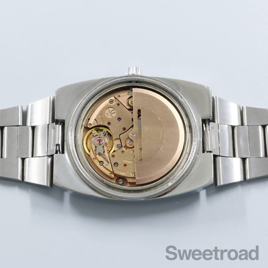 ベルトはこのケース専用のオメガ純正ステンレスブレスを装着しています。当店にてOH(分解掃除)を行っております。