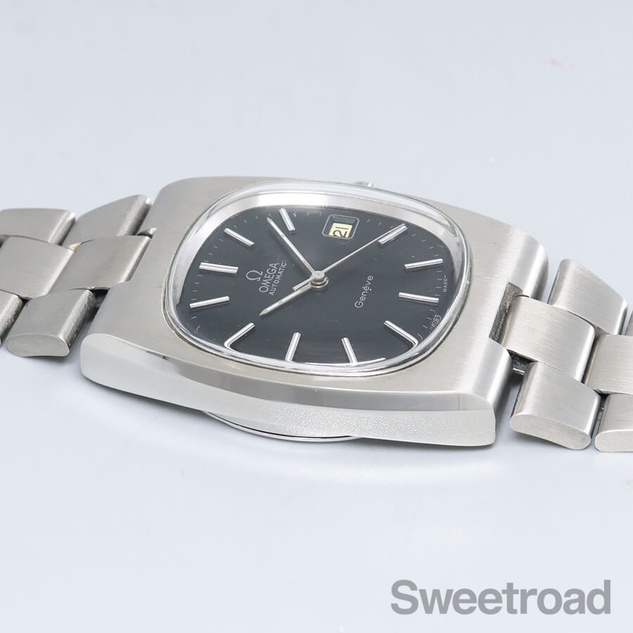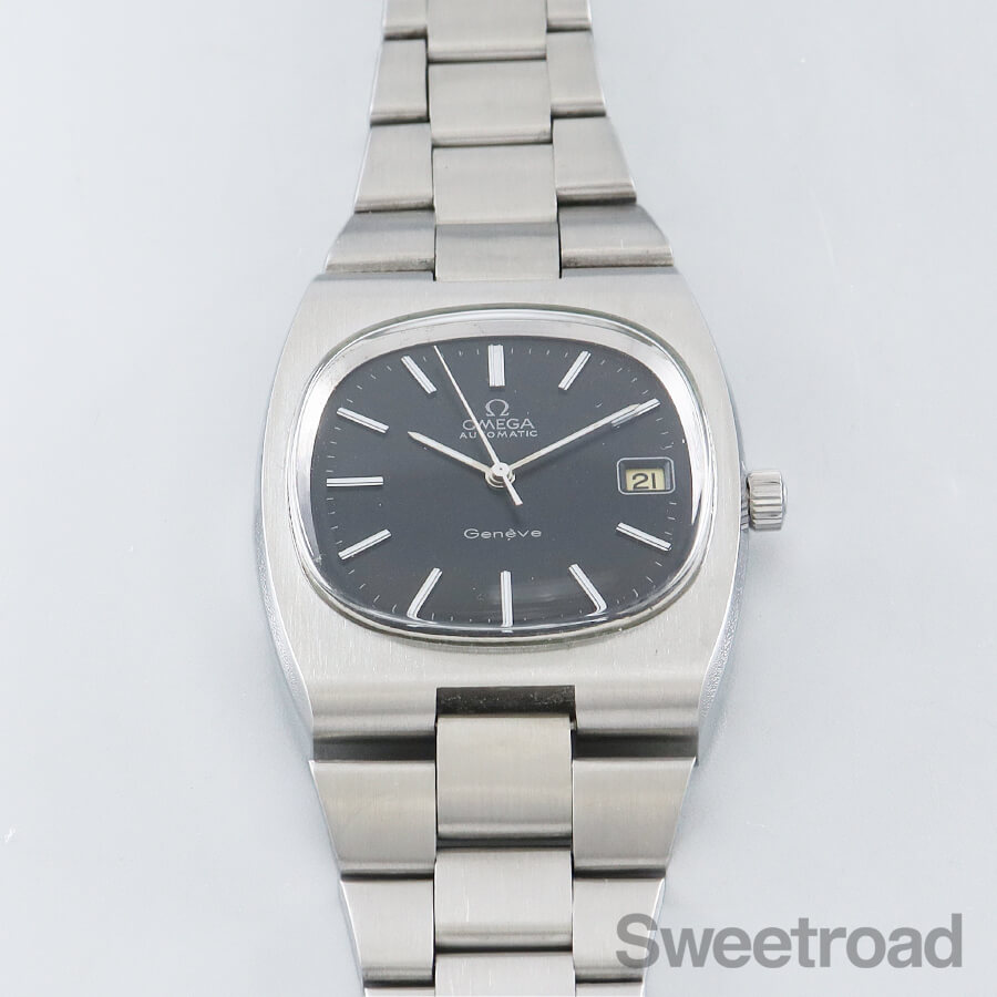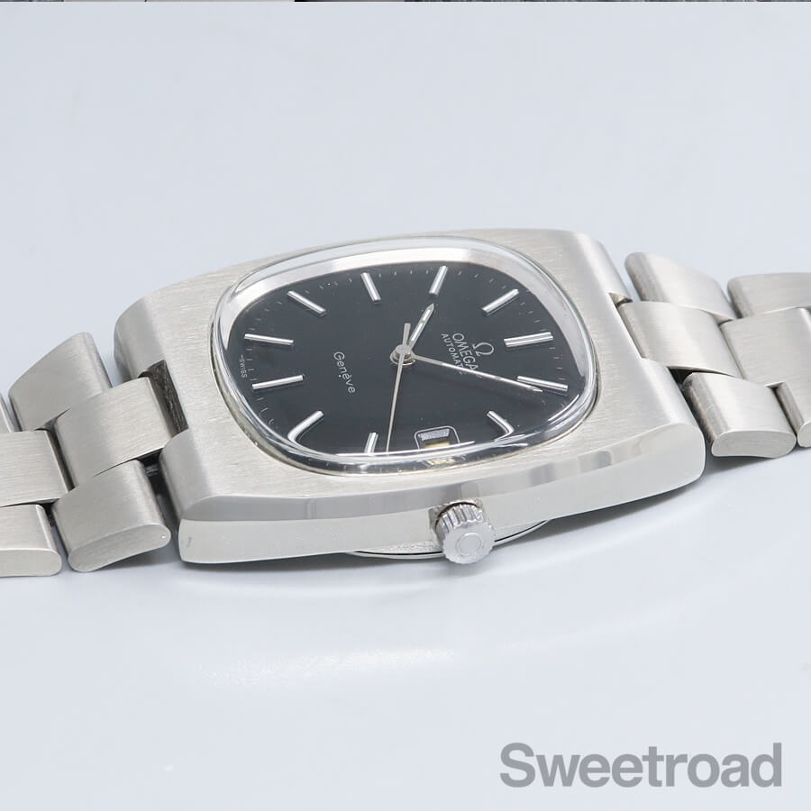 現在のオメガのラインナップには存在しないペットネーム「GENEVE/ジュネーブ」。1950年代頃に登場し、1970年代後半には途絶えた貴重なモデルです。本商品は、珍しいTVスクリーン型のダイヤルが採用された個体で、ラージサイズのケースとも相まって非常に存在感がございます。文字盤はリダンが行われているため綺麗な状態です。 外装にも雰囲気を損ねるようなダメージはありません。