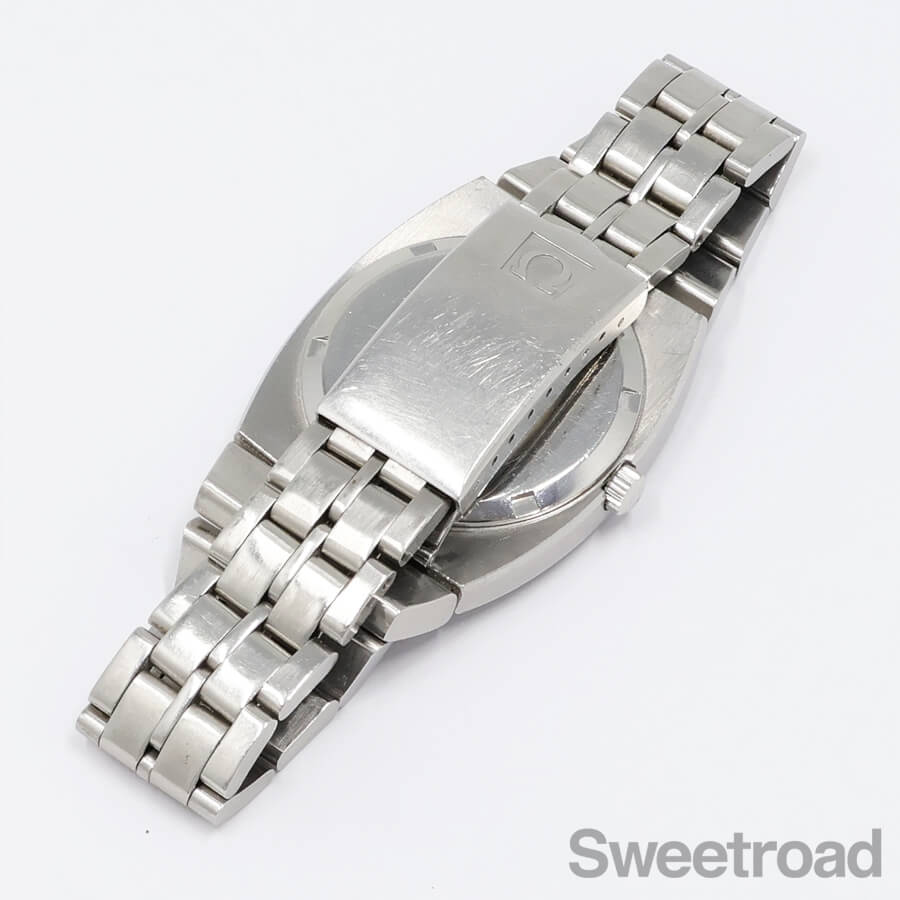 ベルトは、貴重なこのモデル専用のオメガ純正ステンレスブレスが装着されています。