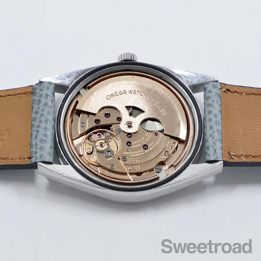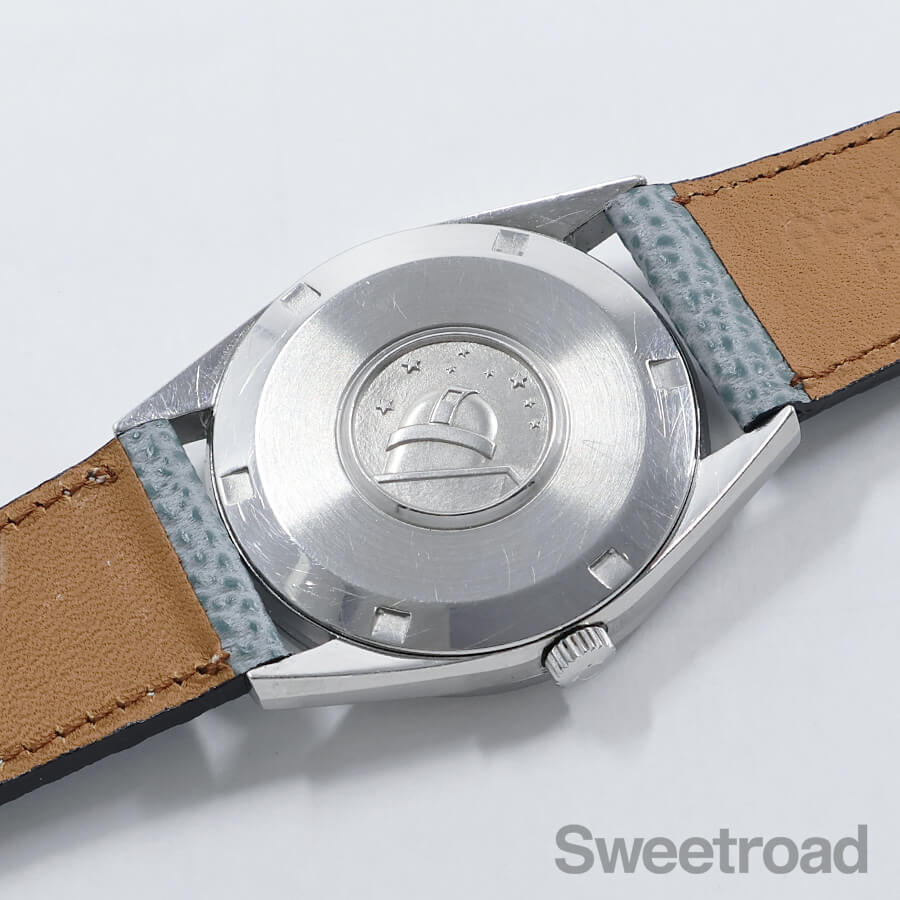 搭載しているCal.712は、クロノメーター検定をクリアした高精度キャリバーで、当時のオメガのクロノメーター機で最も薄い自動巻きムーブメントです。 ベルトは、アキュレイトフォルムのレザーベルトを装着しています。 当店にてOH(分解掃除)を行っております。