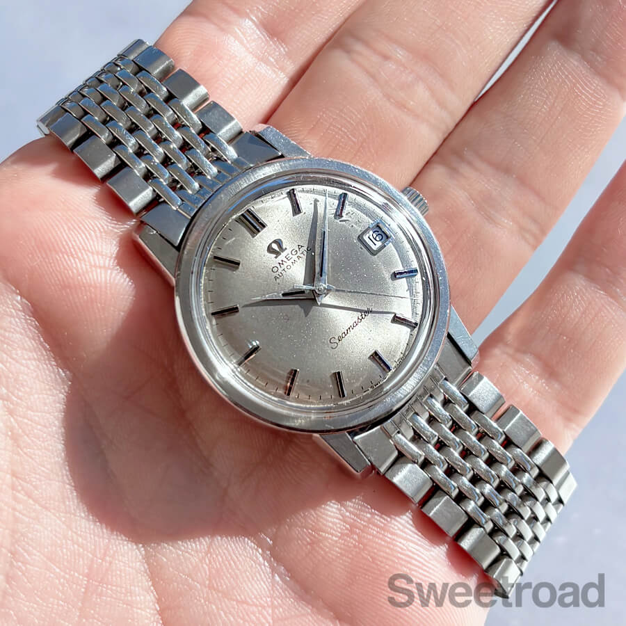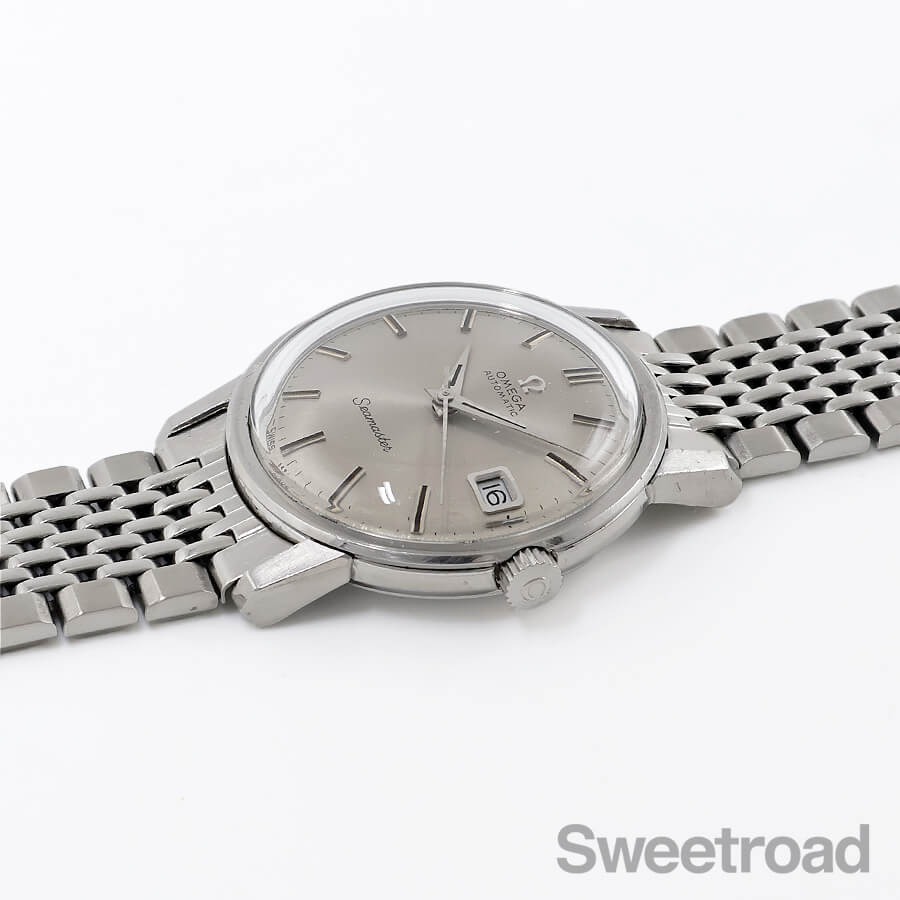 1969年に製造されたオメガのヴィンテージシーマスターが入荷しました。 本商品は、オリジナルのシルバーグレーダイヤルに、アプライドのロゴやドーフィン針が配されたシンプルなデザインが目を惹く個体です。 ほんのりと焼けたサンレイ仕上げのダイヤルには、粒状の経年が現れていますが、ヴィンテージらしい顔立ちに仕上がっています。 外装には若干の小傷がございますが、ケースエッジは残っており、裏蓋のシーホース刻印もはっきりとしています。 ベルトは貴重なオメガ純正のジュビリーブレスが装着されています。 当店にてOH(分解掃除)を行っております。