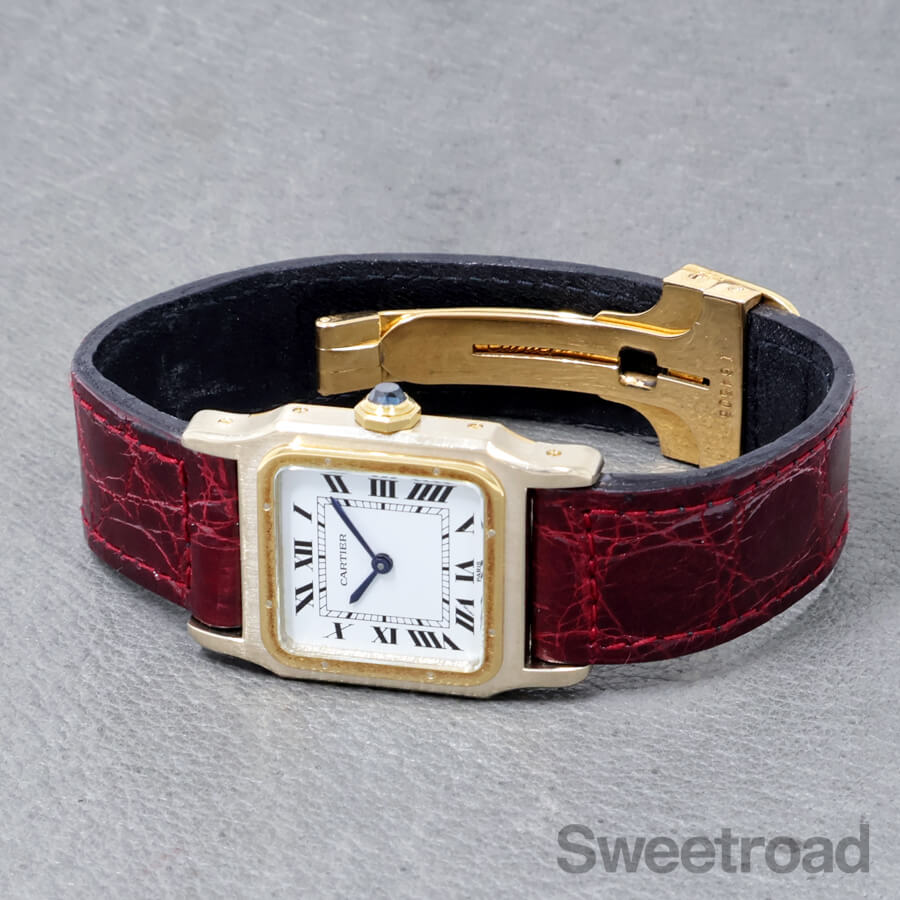 クロコダイルレザーベルトに、カルティエ純正の18KYG製Dバックルを装着しています。