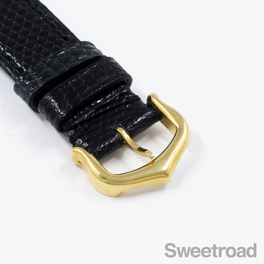 ベルトは、カシス製のリザードレザーベルトに、カルティエ純正の尾錠を装着しています。