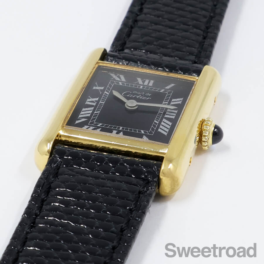 文字盤はマストタンクの中でも珍しいブラックローマンダイヤル。