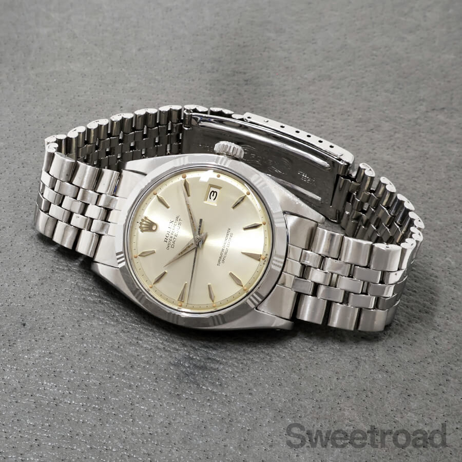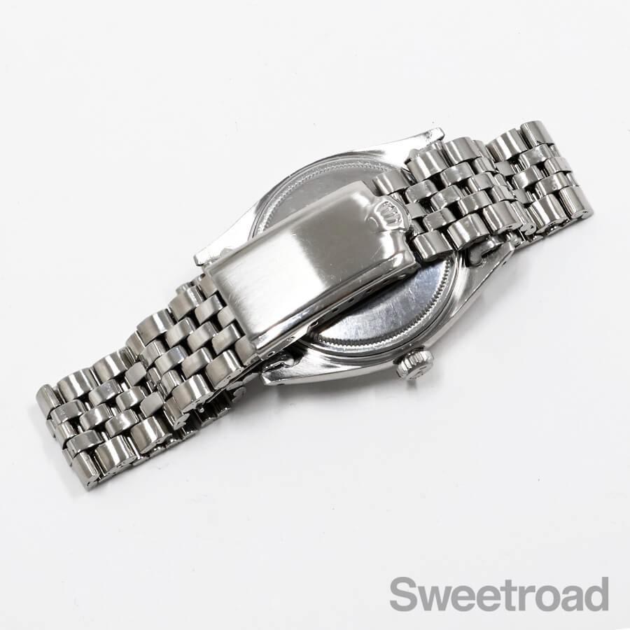 ベルトは貴重な20mm幅のロレックス純正ジュビリーブレスが装着されており、鳥足やデベソとも呼ばれる王冠が飛び出たバックルもポイントです。