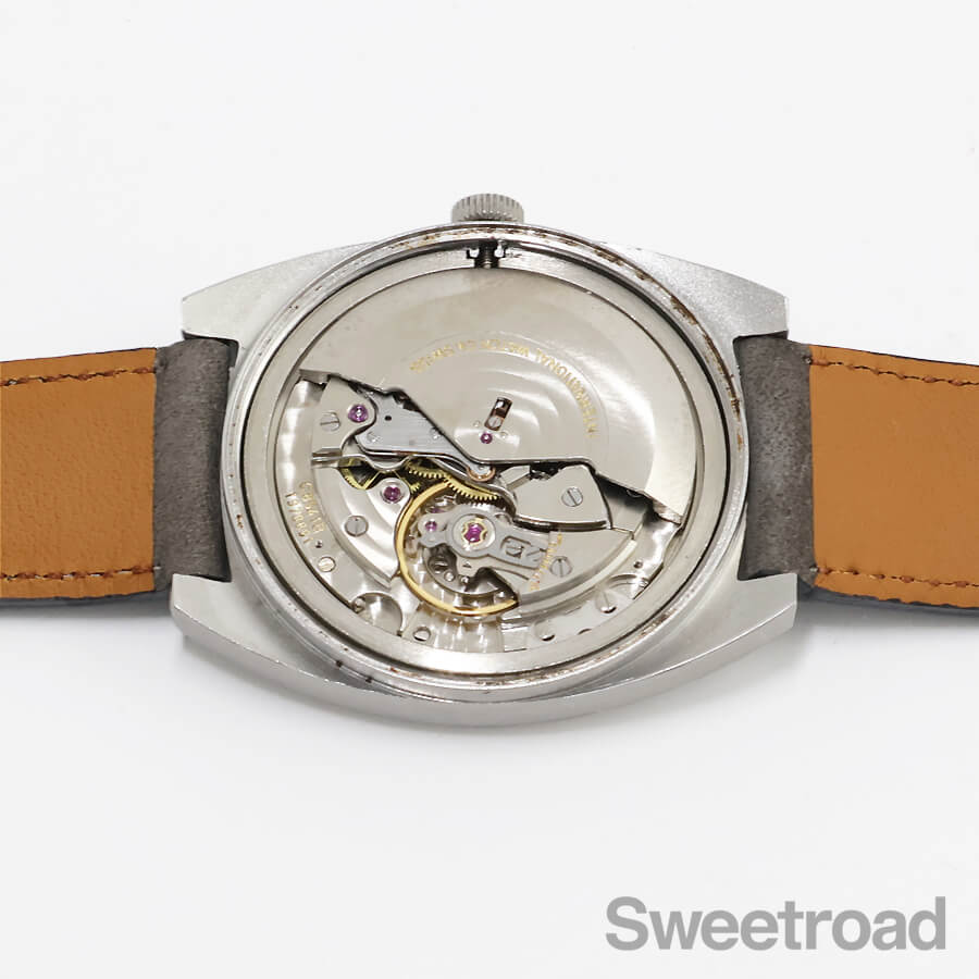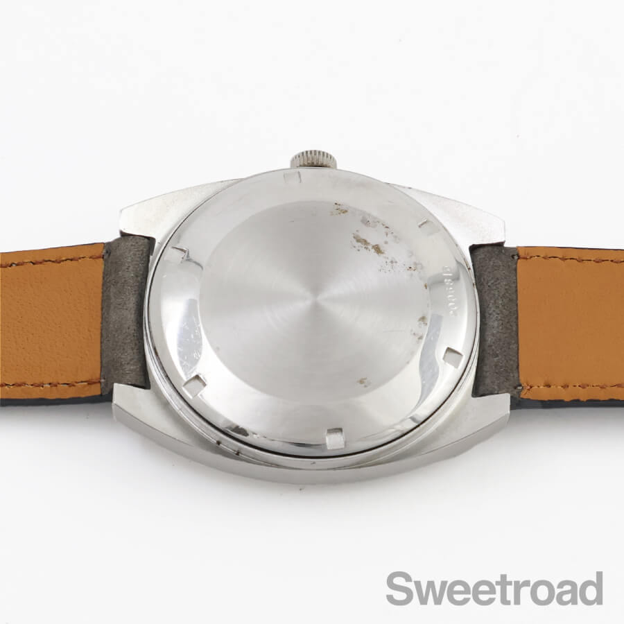 外装には細かな小傷、裏蓋に腐食が見受けられますが、雰囲気を損ねる過度なダメージではなく、ケースフォルムも維持されています。