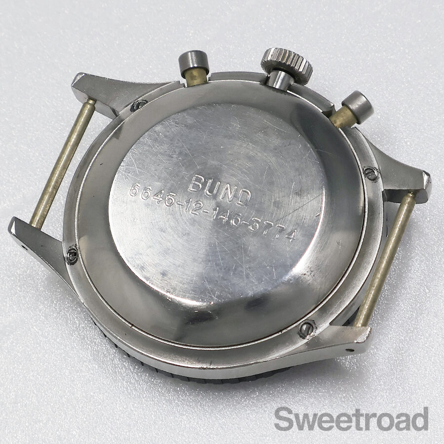 ケースバックには、NATOコード「6645-12-146-3774」、ドイツ連邦軍を意味する「BUND」が刻印されており、しっかりと読み取れる状態です。