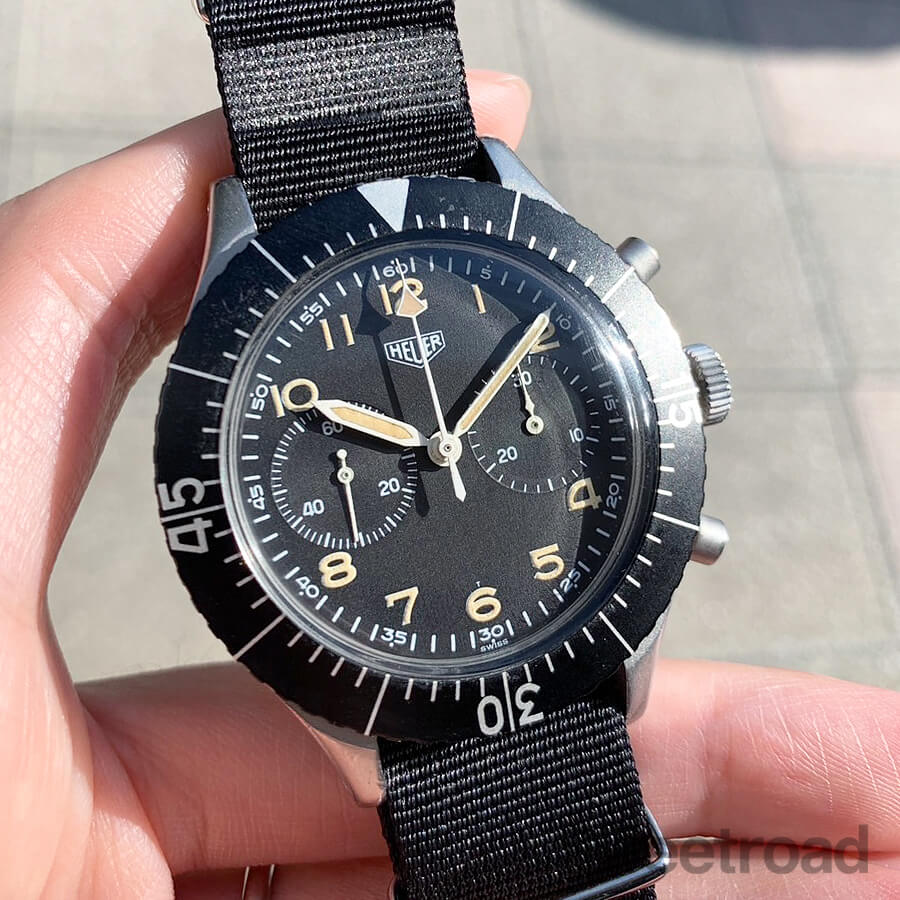 1960年代後半に西ドイツ空軍で採用されていたホイヤーのミリタリークロノグラフ「タイプ1550」。