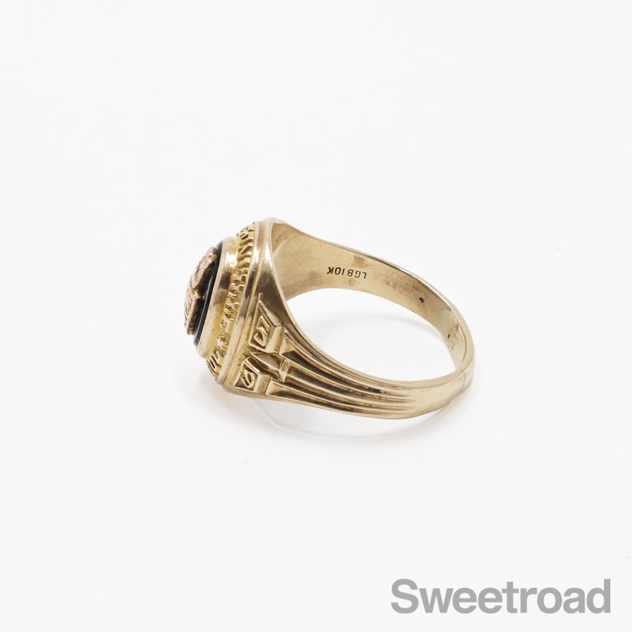 素材には10KYGが使用されており、オーバル型のブラックオニキスや学校のエンブレムが目を惹く貴重な逸品です。