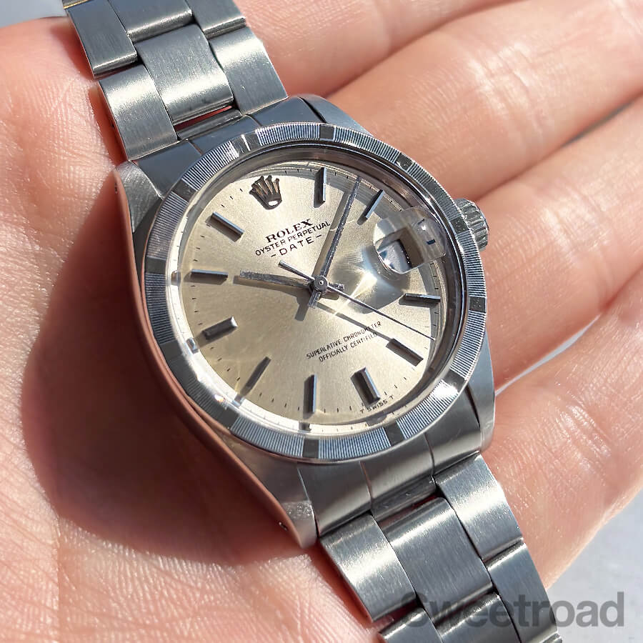 現行品には無いエンジンターンドベゼルが装備された、ロレックス「オイスターパーペチュアルデイト/Ref.1501」が入荷しました。 スタンダードモデルながらスポーティーな印象を受ける人気の高いモデルです。
