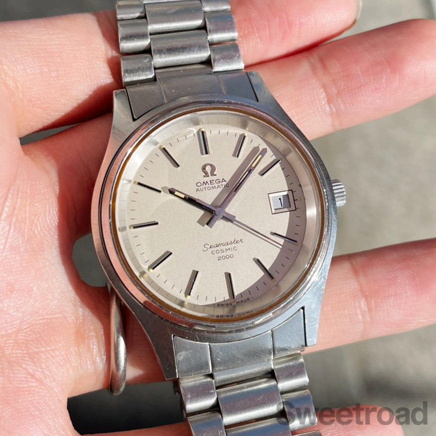 美しいヘアライン仕上げのシルバーダイヤルが目を惹く「シーマスターコスミック2000」が入荷しました。