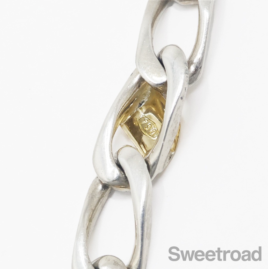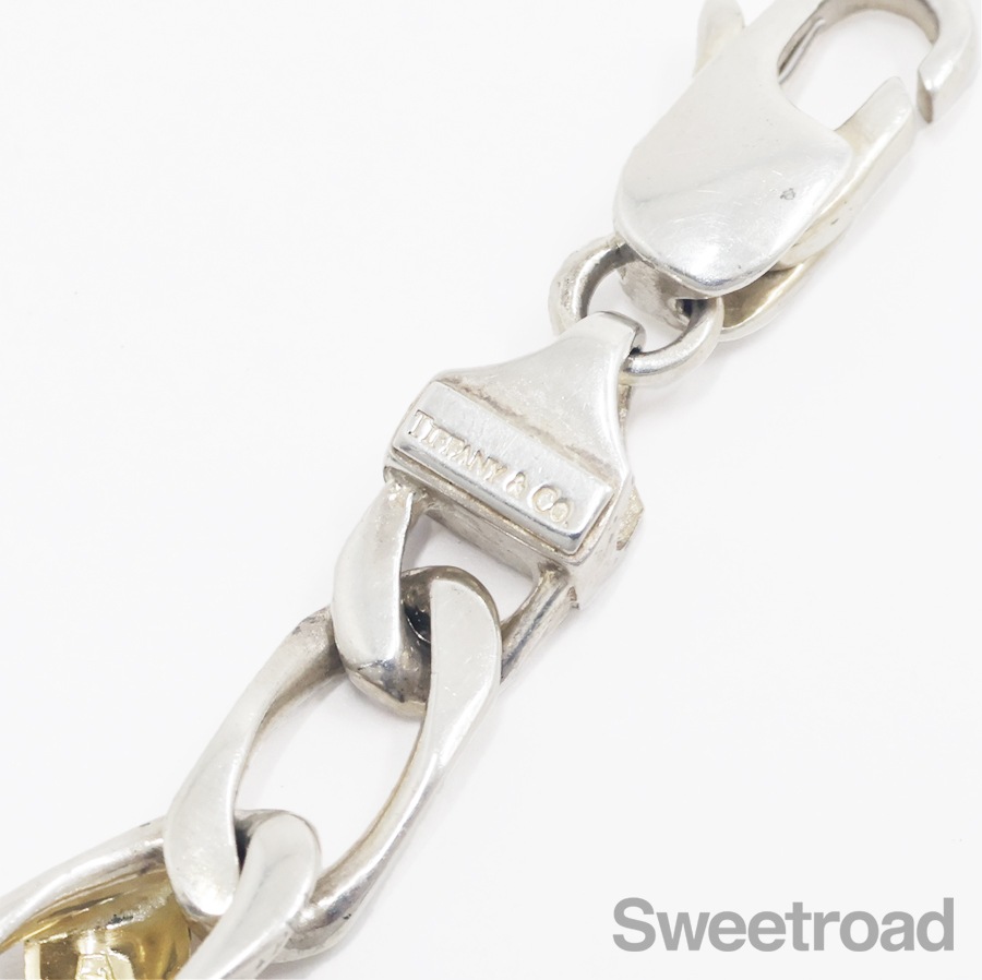18金イエローゴールドと925シルバーが組み合わさった美しいデザインが魅力的なティファニーの「フィガロチェーンブレスレット」が入荷しました。手首周り18.0cmくらいまでの方であれば余裕を持って身につけることができます。シルバー特有の若干の小傷こそございますが、全体的にダメージの少ない良好な状態です。ブランド名を表す刻印もしっかりと残っています。