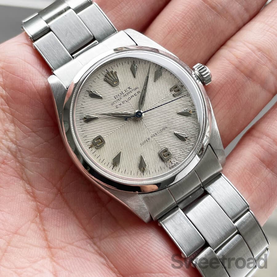 従来のエクスプローラーのスポーティーなデザインとは違い、ドレスラインに近いデザインが採用されており、ダイヤルバリエーションも多く存在します。