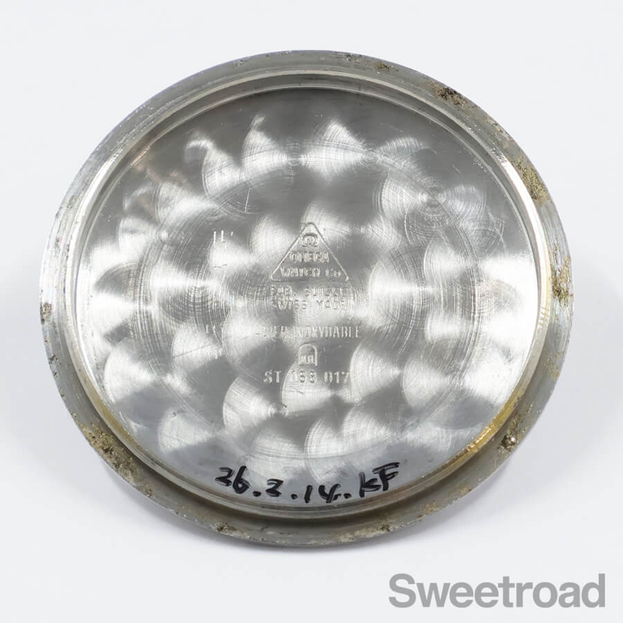 本商品は、12時位置にOMEGAの文字、6時位置に星マークが配された前期型の個体です。