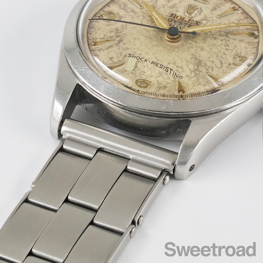 抜群の風合いにエイジングしたパウダーダイヤルが目を惹く、ロレックスの手巻きノンデイトモデル「オイスターロイヤル/Ref.6244」が入荷しました。