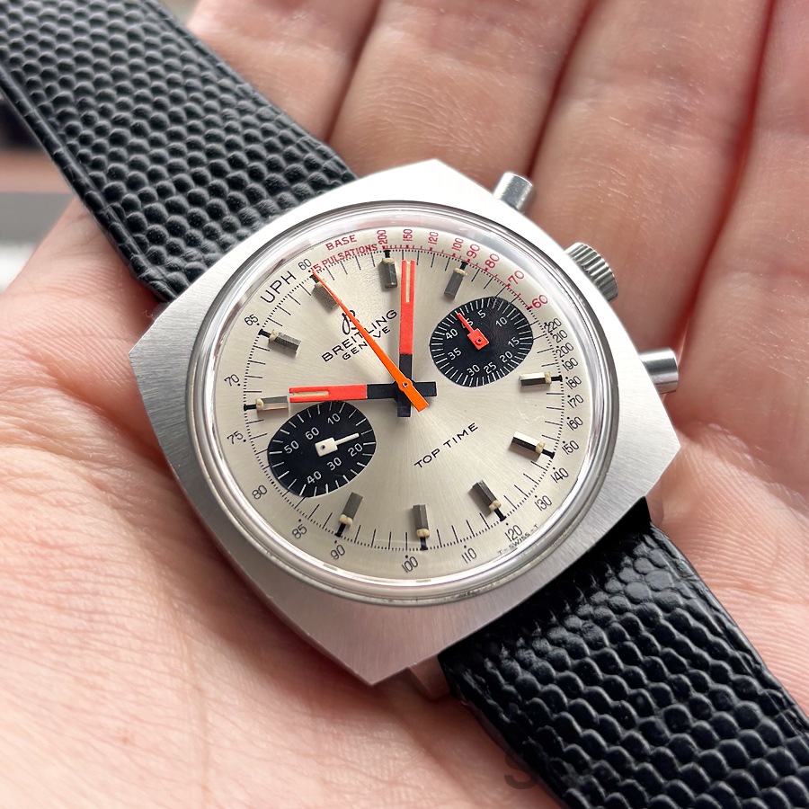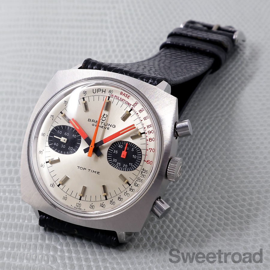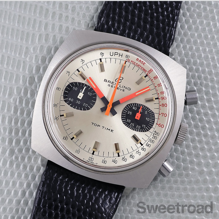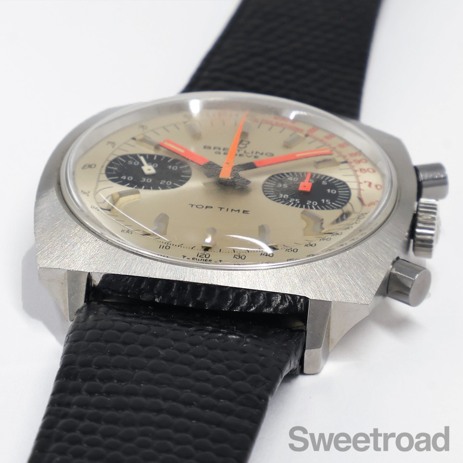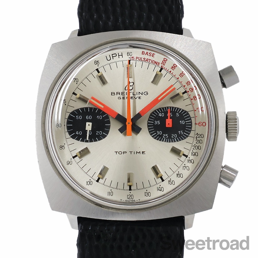 デカ厚なクッションケースと楕円形のインダイヤルが採用された、ブライトリングの「トップタイム」が入荷しました。
