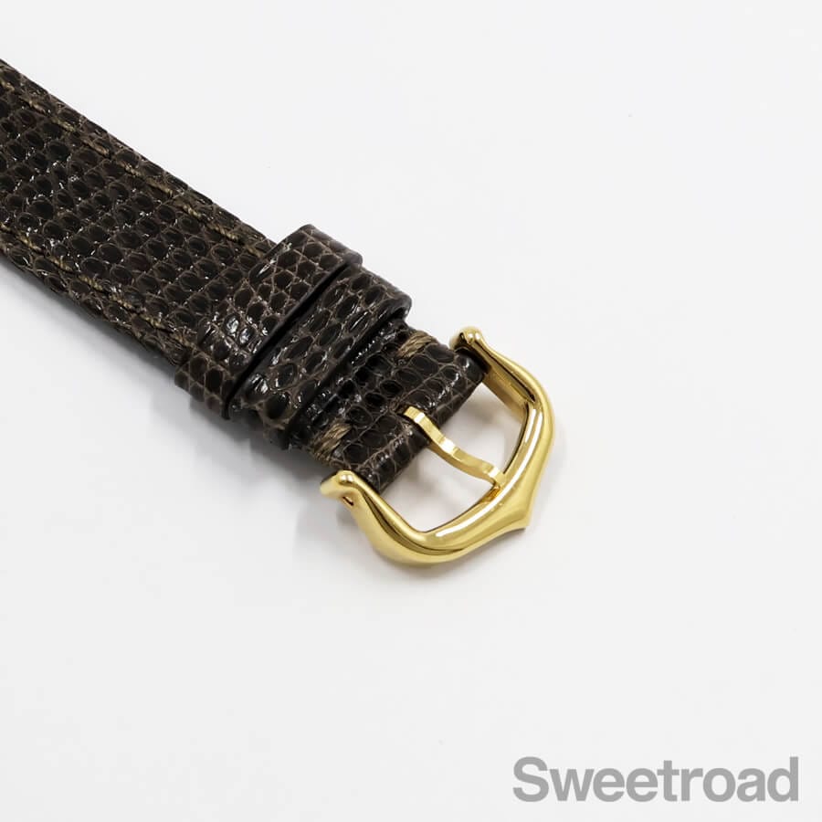 ベルトは、カシス製のリザードレザーベルトに、カルティエ純正の尾錠を装着しています。