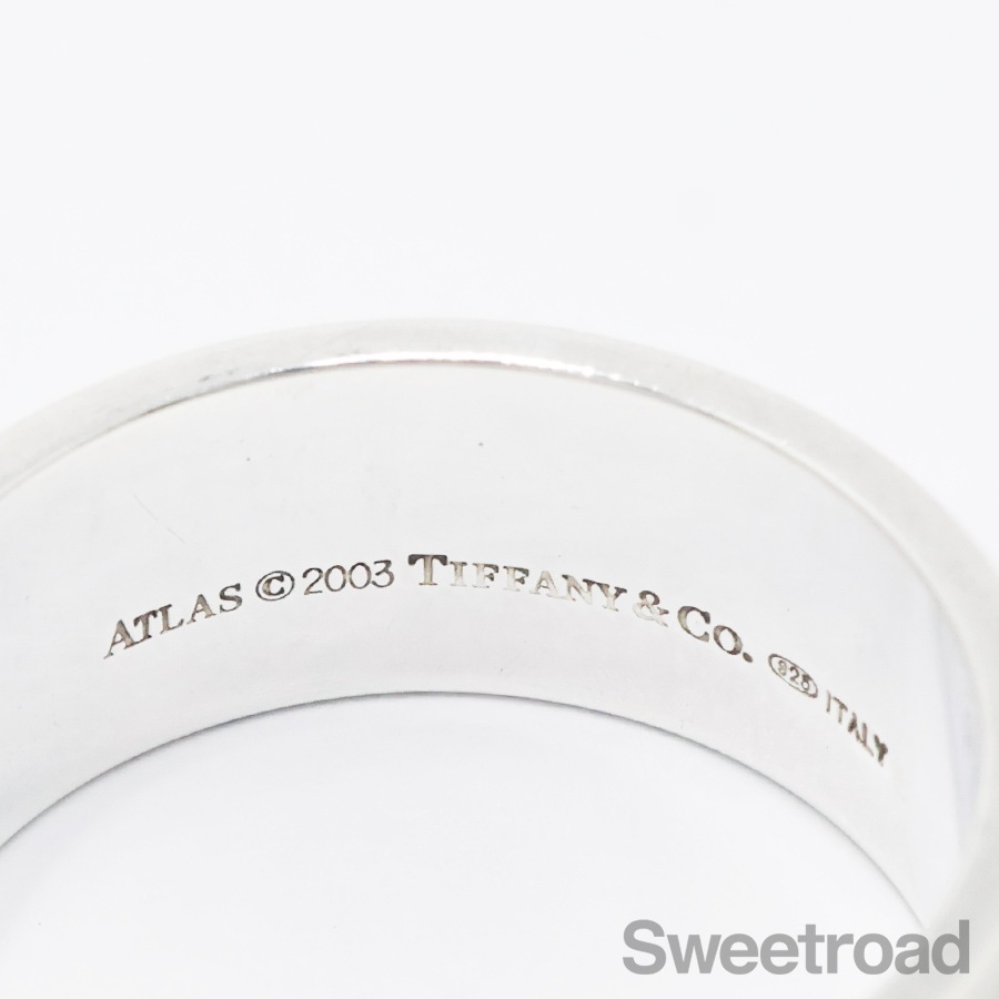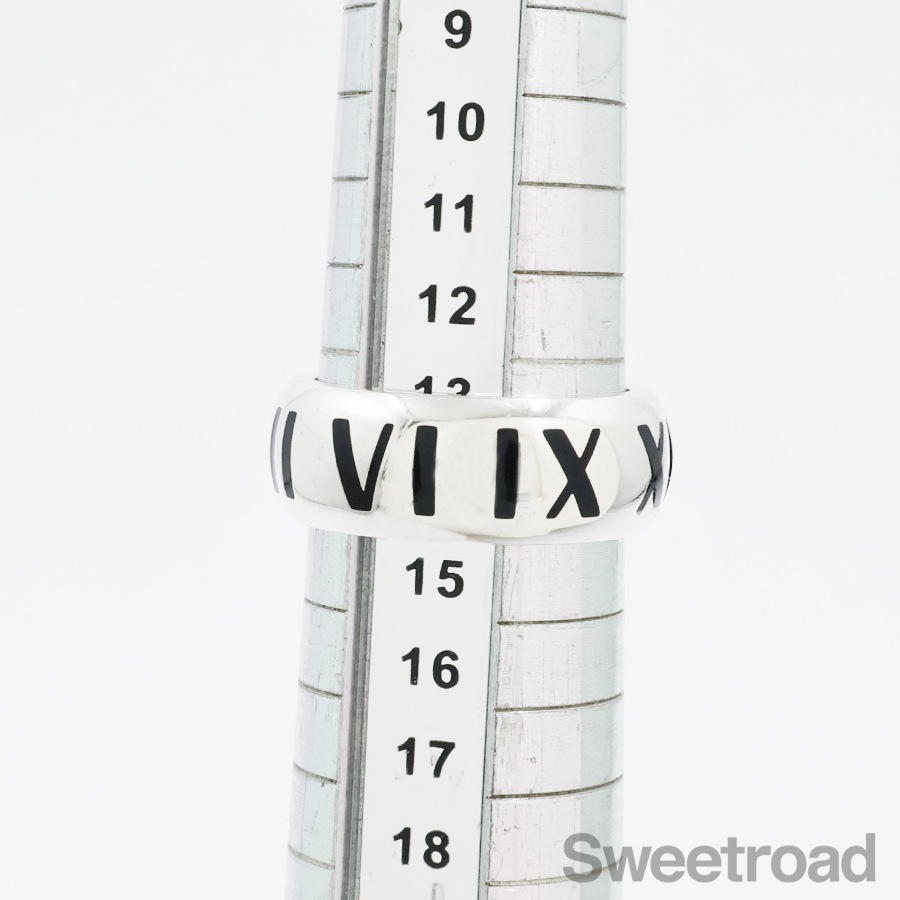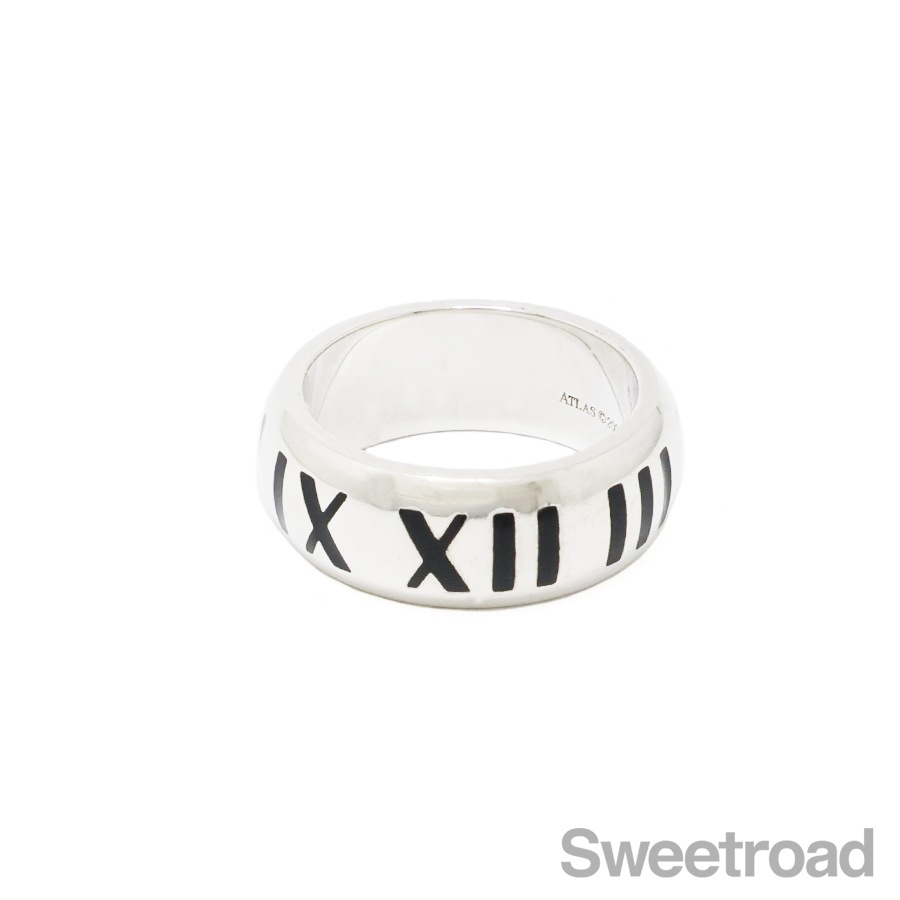 グラフィカルなローマ数字が配された、ティファニーの「アトラスリング」。本商品は、インパクトのあるブラックカラーのローマン数字が目を惹きます。本商品は幅が広いため、13〜14号くらいの装着感です。男女ともに身につけやすいユニセックスなアイテムで、シルバー特有の小傷こそございますが、全体的に目立つようなダメージは見られません。ブランド名や素材を表す内側の刻印はしっかりと残っています。