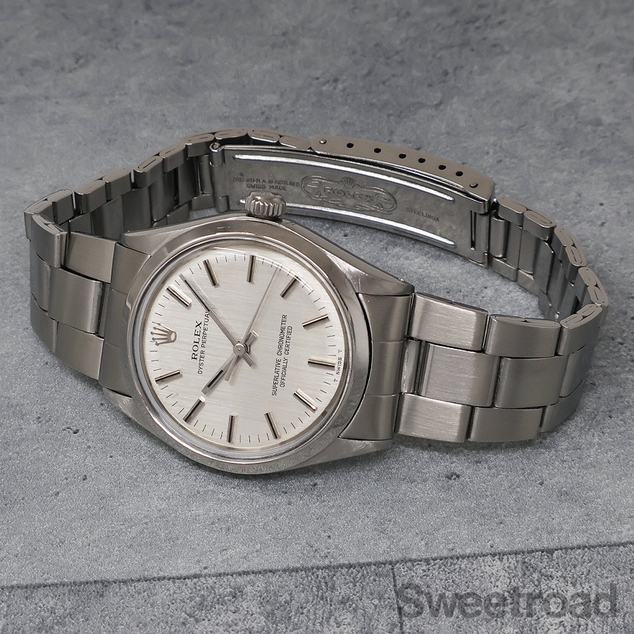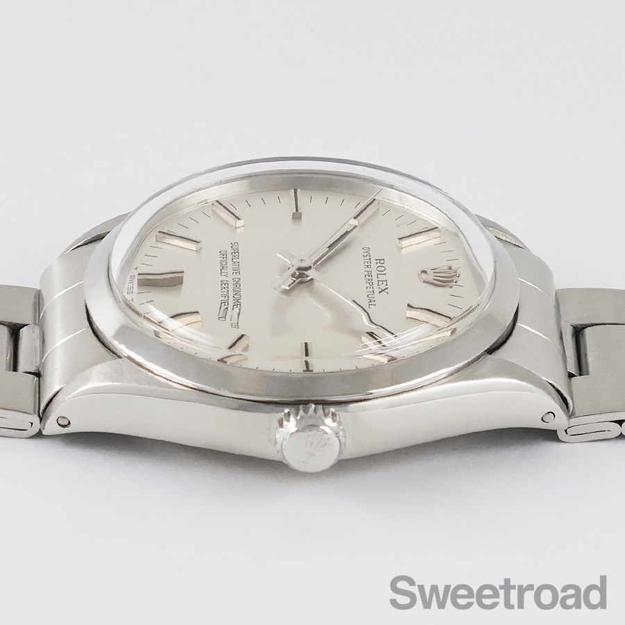 美しいヘアライン仕上げが施されたシルバーダイヤルが目を惹く「オイスターパーペチュアル/Ref.1002」が入荷しました。