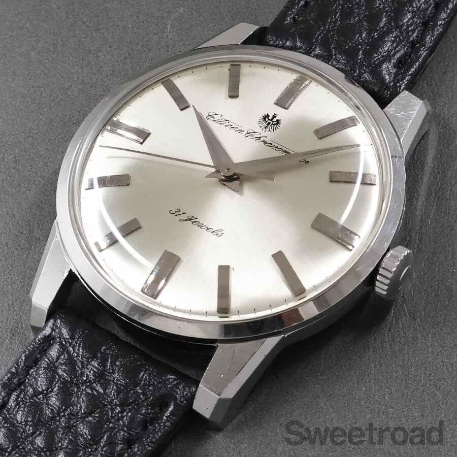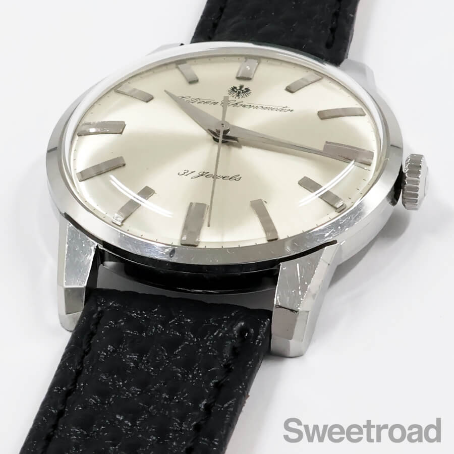 ドーフィン針や多面カットインデックスが配されており、当時の造りの良さを感じられる顔立ちです。
