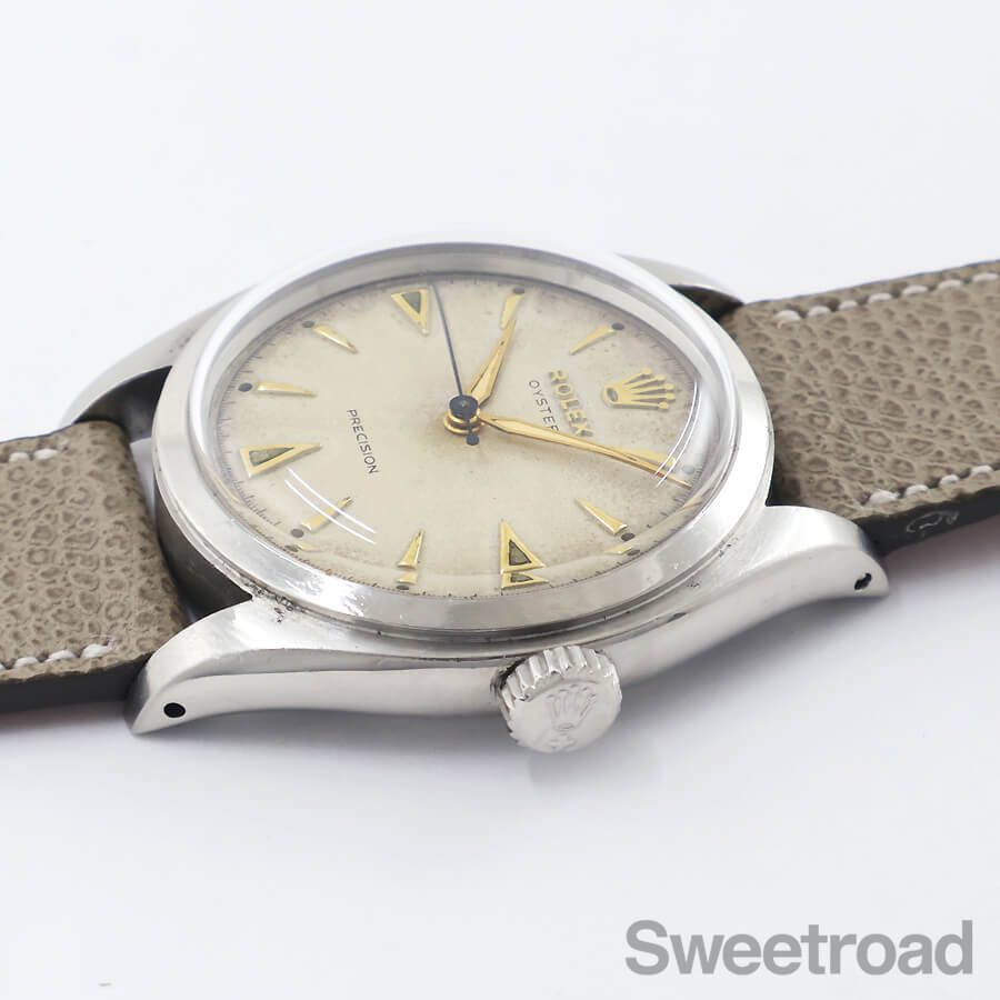 外装には若干の小傷や腐食が見受けられますが、オイスターケースのプロポーションはしっかりと維持しています。