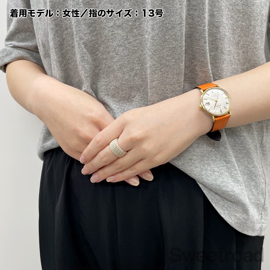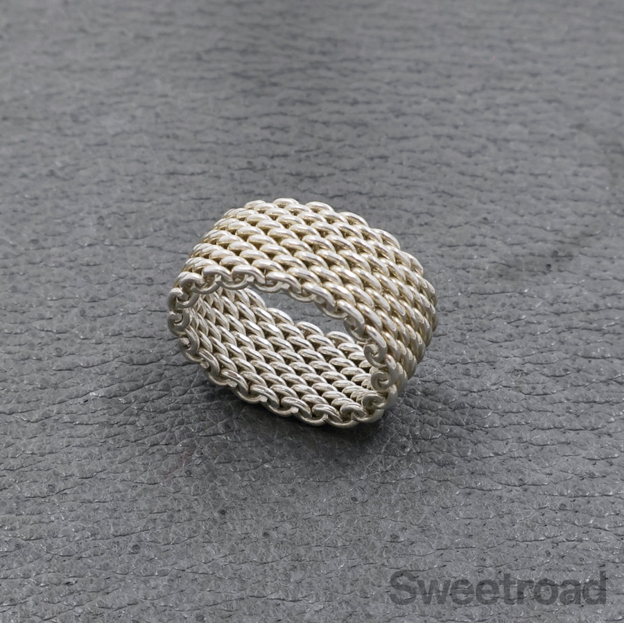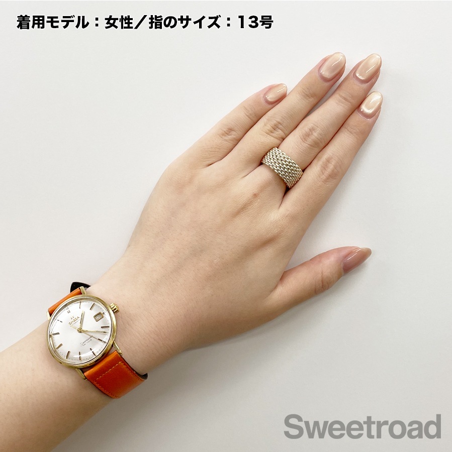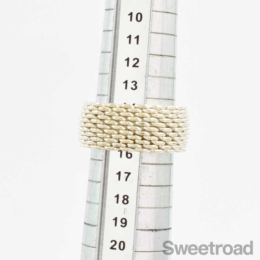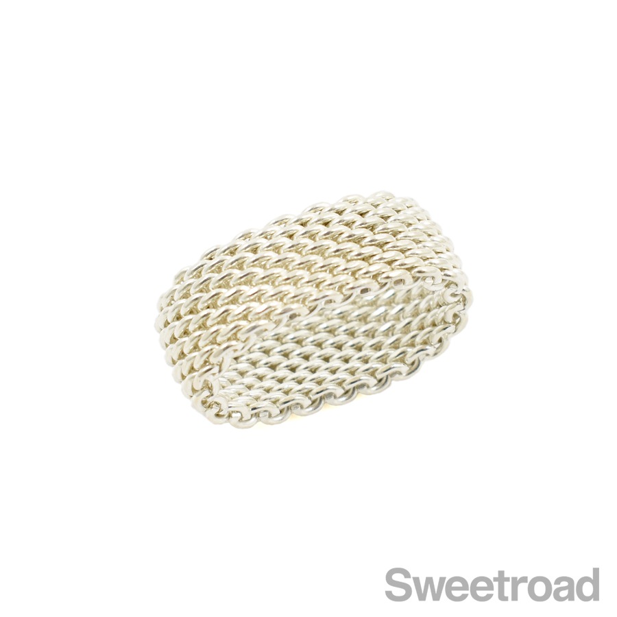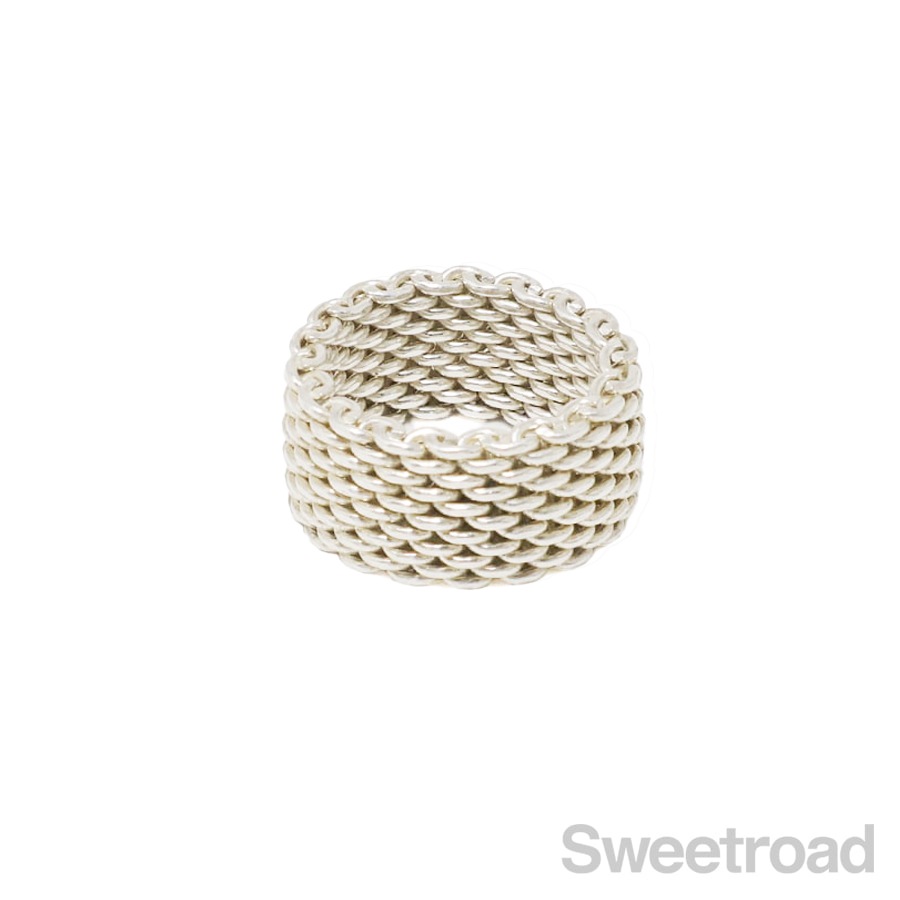 珍しいメッシュデザインが採用された、ティファニーの「サマセットリング」が入荷しました。 通常のリングよりもフィット感があるのが特徴で、非常に付け心地の良いモデルです。本商品は幅が広いため、12〜13号くらいの装着感です。 目立つようなダメージは見られず、内側の刻印もはっきりと残っています。