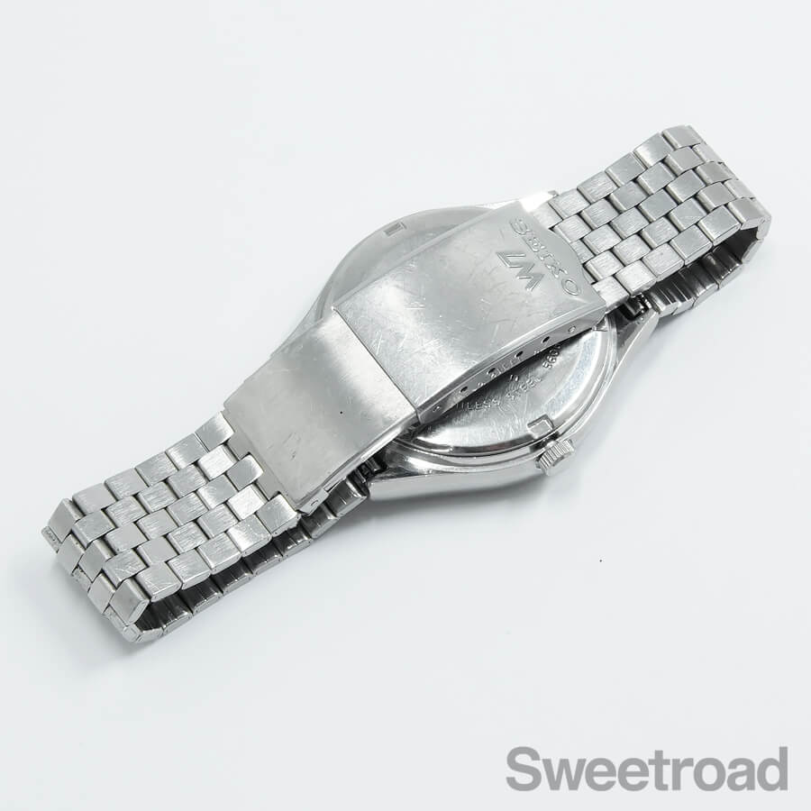 ベルトは 「SEIKO LM」刻印のバックルが付いた、貴重なセイコー純正のステンレスブレスが装着されており、エクステンション式の延長バックルも付いています。