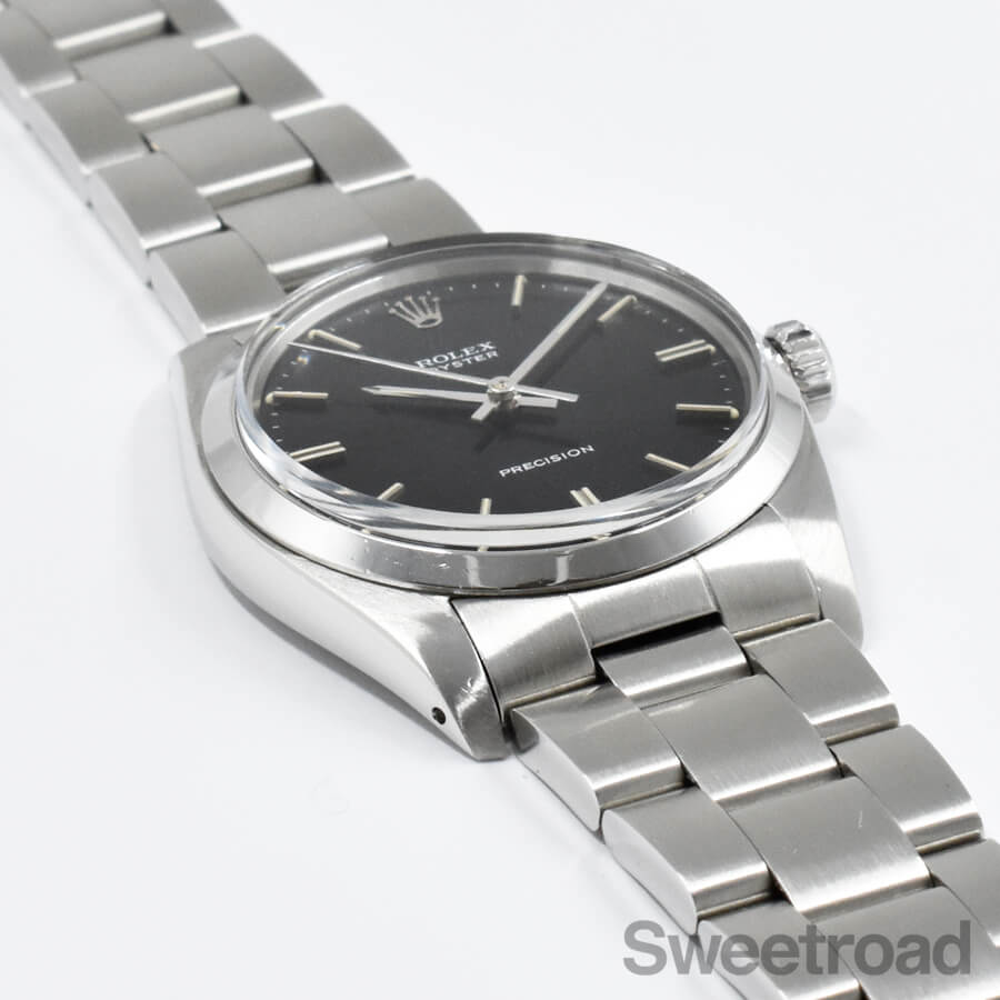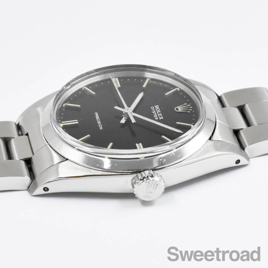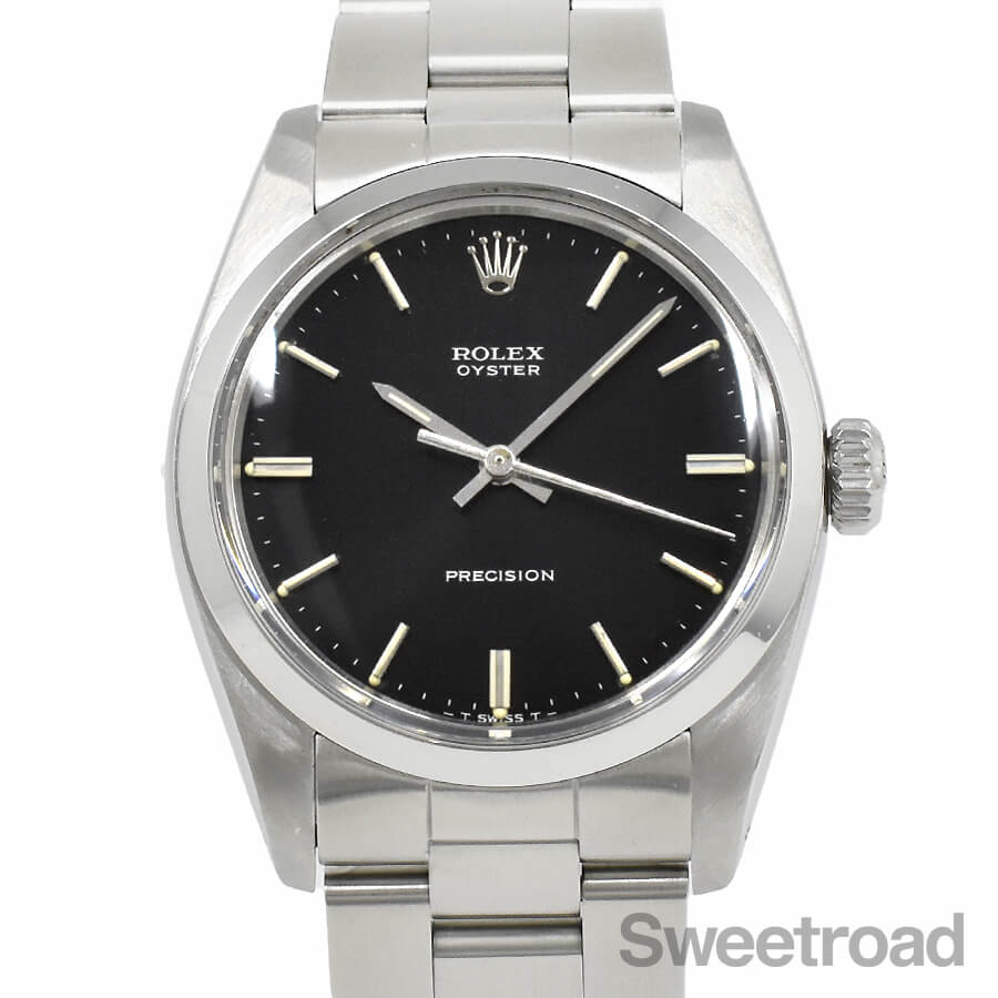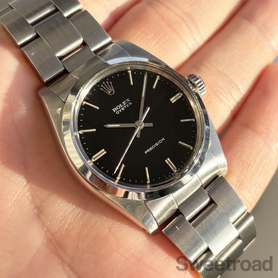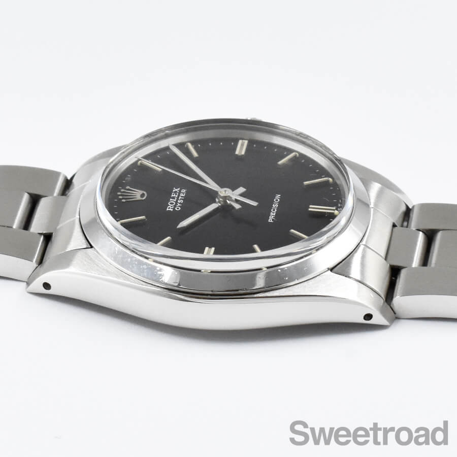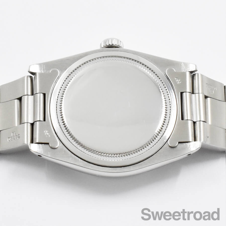 1950年代から1980年代後半まで製造された、ロレックスのロングセラーモデル「オイスター/Ref.6426」。 1985年に製造された最後期の個体が入荷しました。 文字盤は、80年代特有のしっとりとした光沢感が目を惹く、オリジナルブラックダイヤル。 インデックス周りにほんのわずかな傷みが見受けられる程度で、全体的に綺麗な状態を維持しています。 針にはわずかな経年はございますが、着用時に目立つほどではありません。 ミドルケースには後年に仕上げが施されているため、ダメージの少ない綺麗な状態です。 過度なケース痩せや丸みも見られず、オイスターケースのプロポーションも保たれています。 ムーブメントは、手巻きの名機「Cal.1225」を搭載。 ベルトは、ロレックス純正ハードブレス(1986年製)が装着されており、ケースとほぼ同年式の貴重な組み合わせです。 当店にてOH(分解掃除)を行っております。
