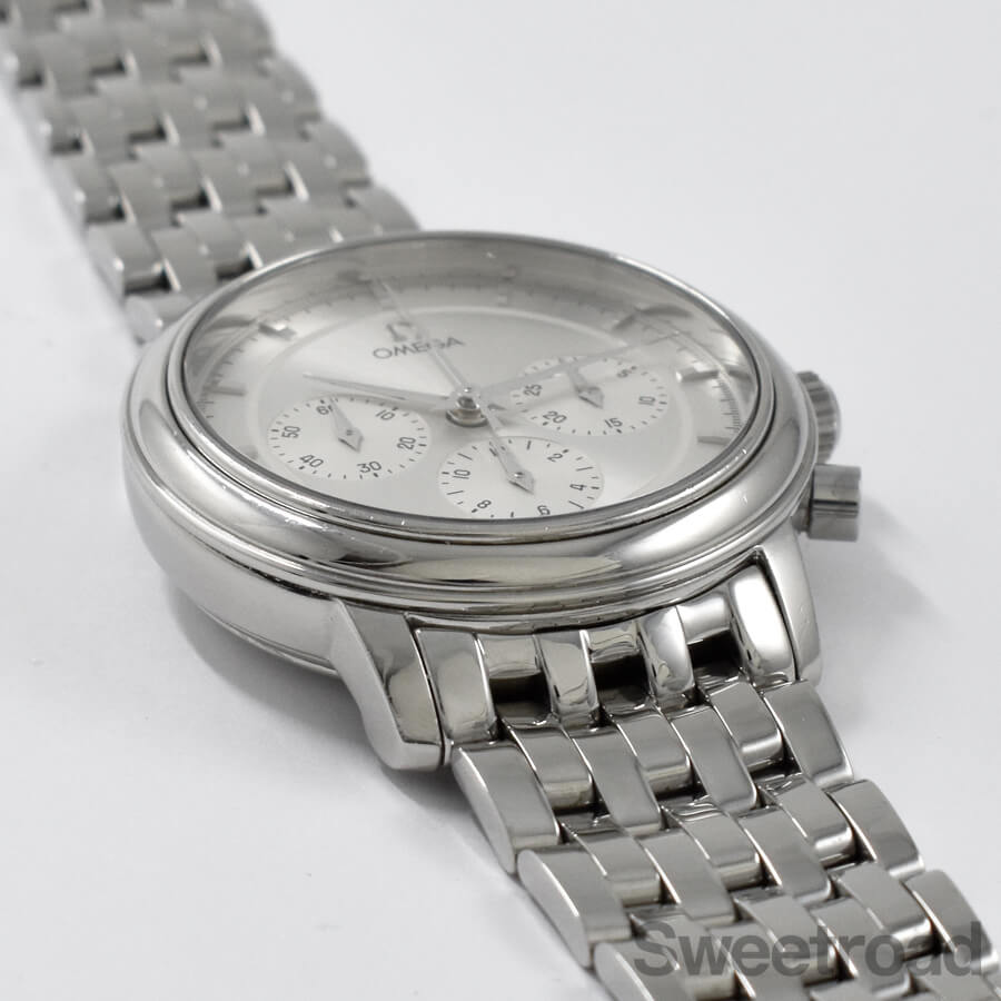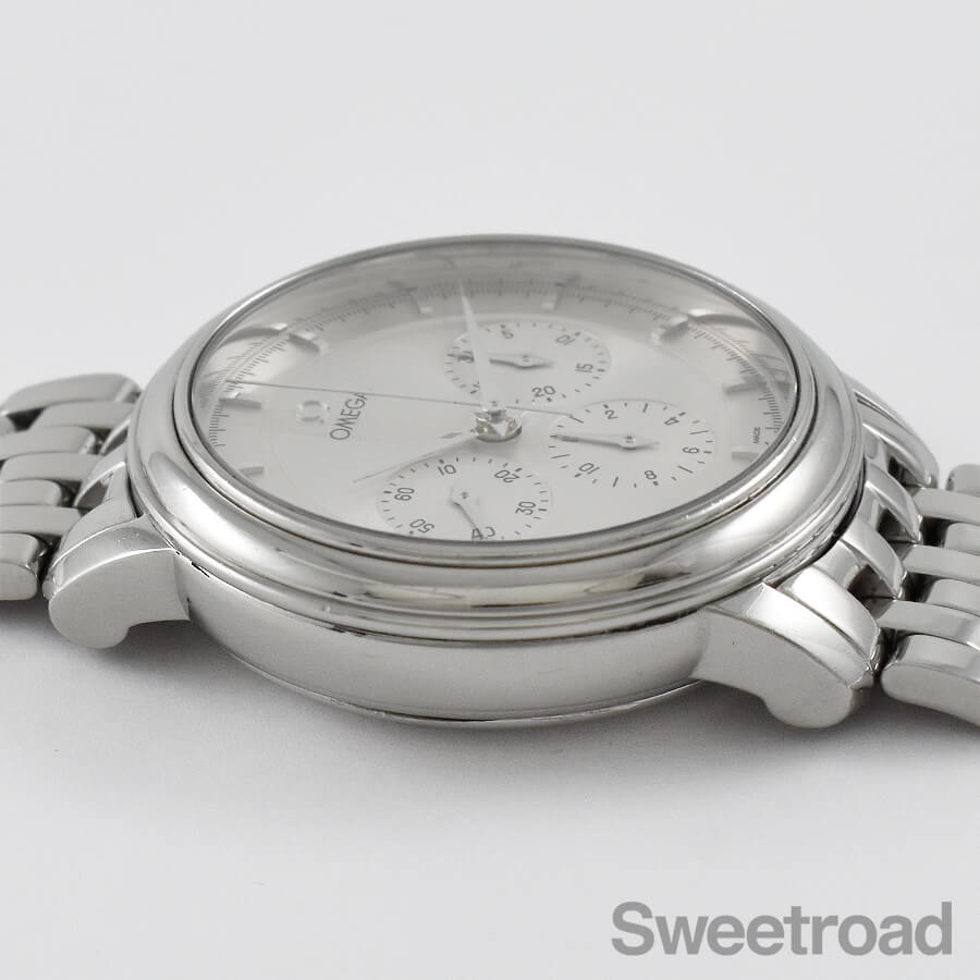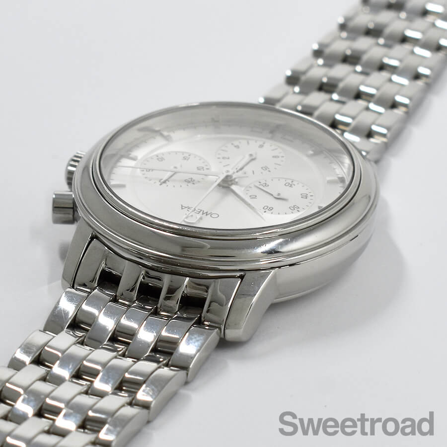 ベルトは、プッシュボタン式のオメガ純正ステンレスブレスを装着しています。